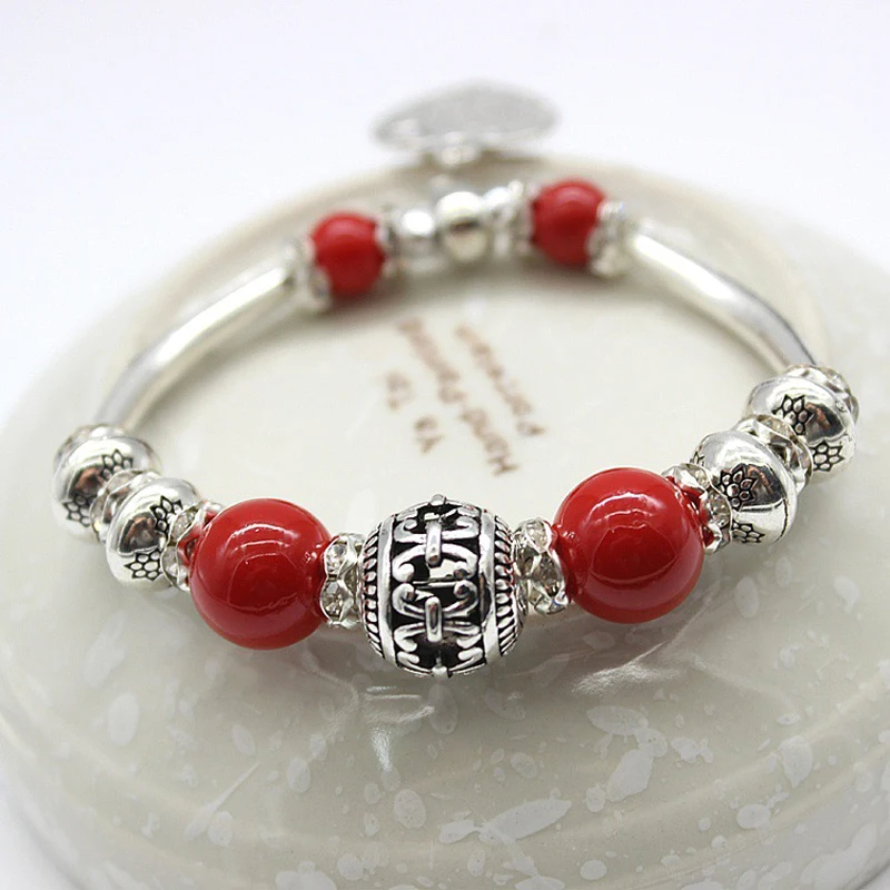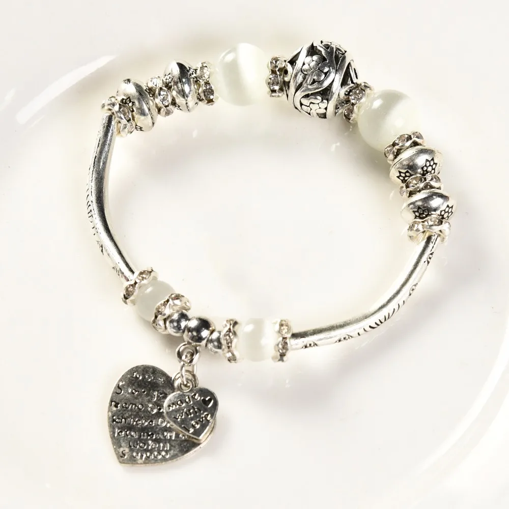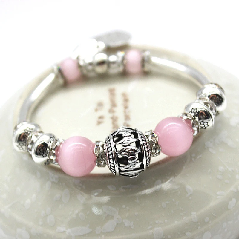 1pcs Women crystal agate bracelet imitation silver ancient silver cat’s eye stone string