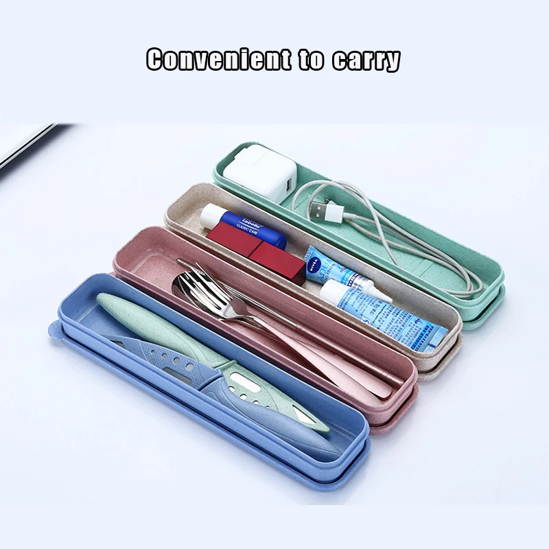 1Piece Tableware Set New Travel camping Stainless Steel Cutlery Portable box case Picnic Outdoor Usage Cute Stationery Box