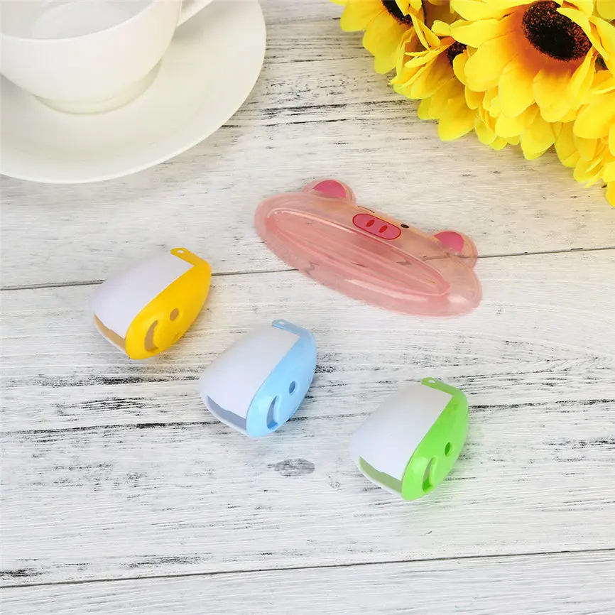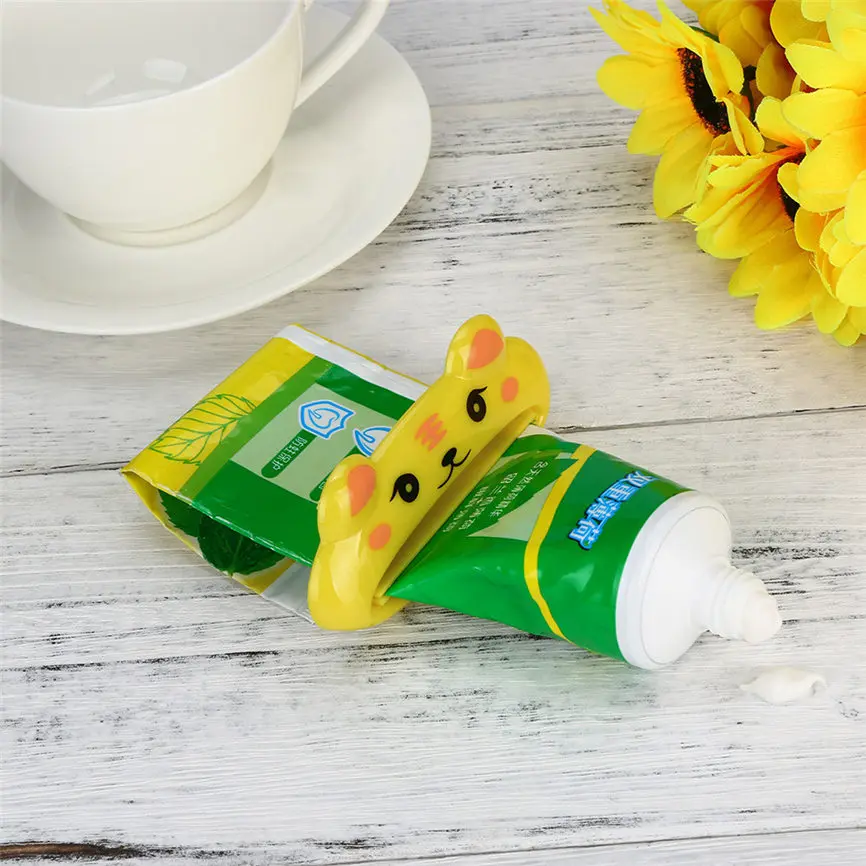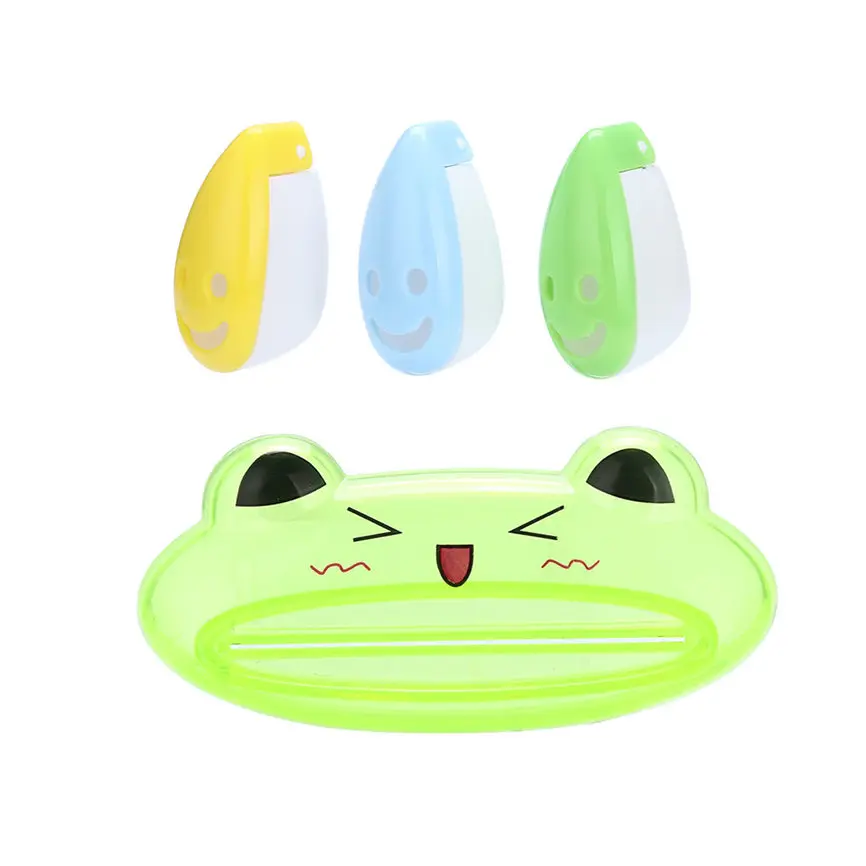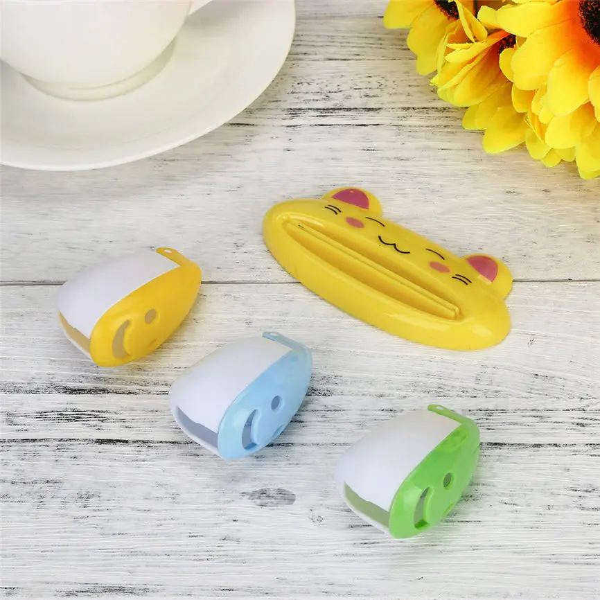 1xCartoon Animal Smiley Tube Squeezer Bathroom Toothpaste+3xSmiling Face Toothbrush Holder Dropshipping Aug#1