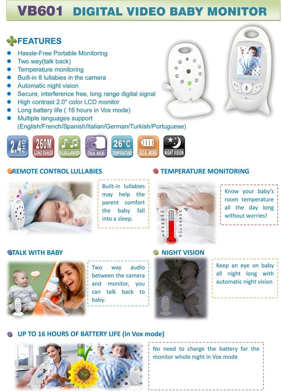 – Baby Room’s Temperature can display on the LCD