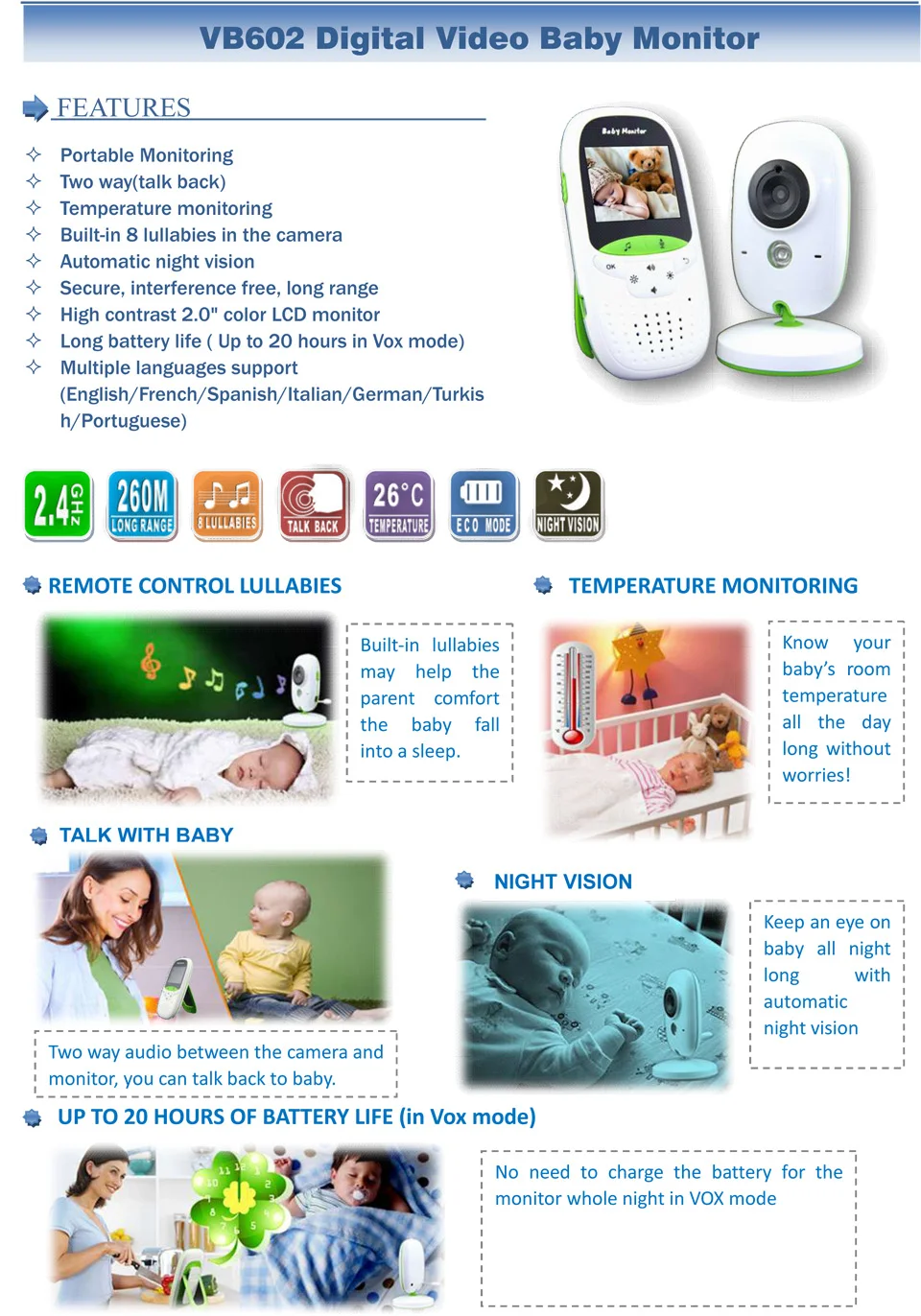 2.4GHz DIGITAL WIRELESS BABY MONITOR WITH INTERCOM