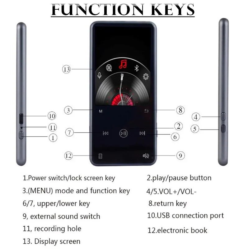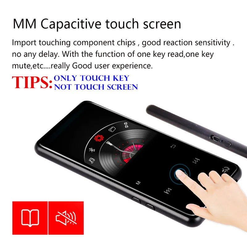 2.4″ TFT Screen 8GB/16GB Bluetooth 4.1 MP3 MP4 Player Metal Touch Key Hifi MP4 Player Sport Mini Walkman Speaker FM Recorder Pen