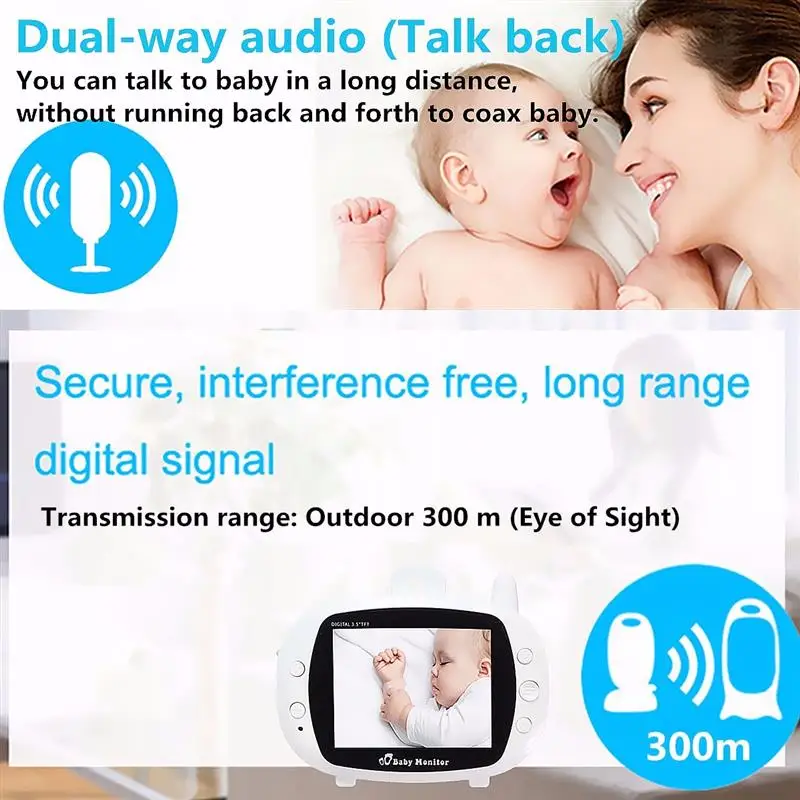 This 3.5 inch TFT LCD screen baby monitor is an amazing product for all parents or nannies to monitor their babies