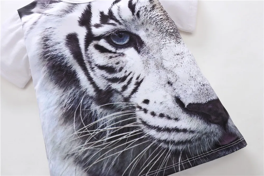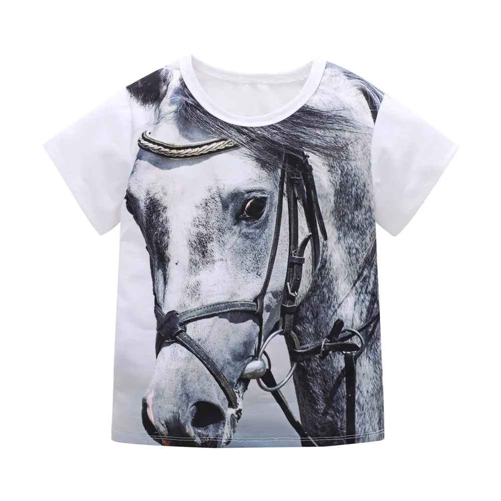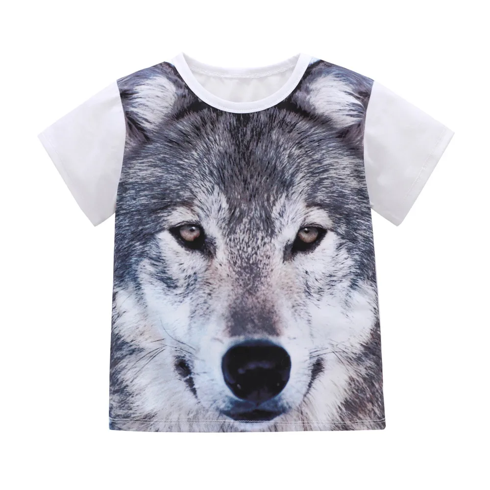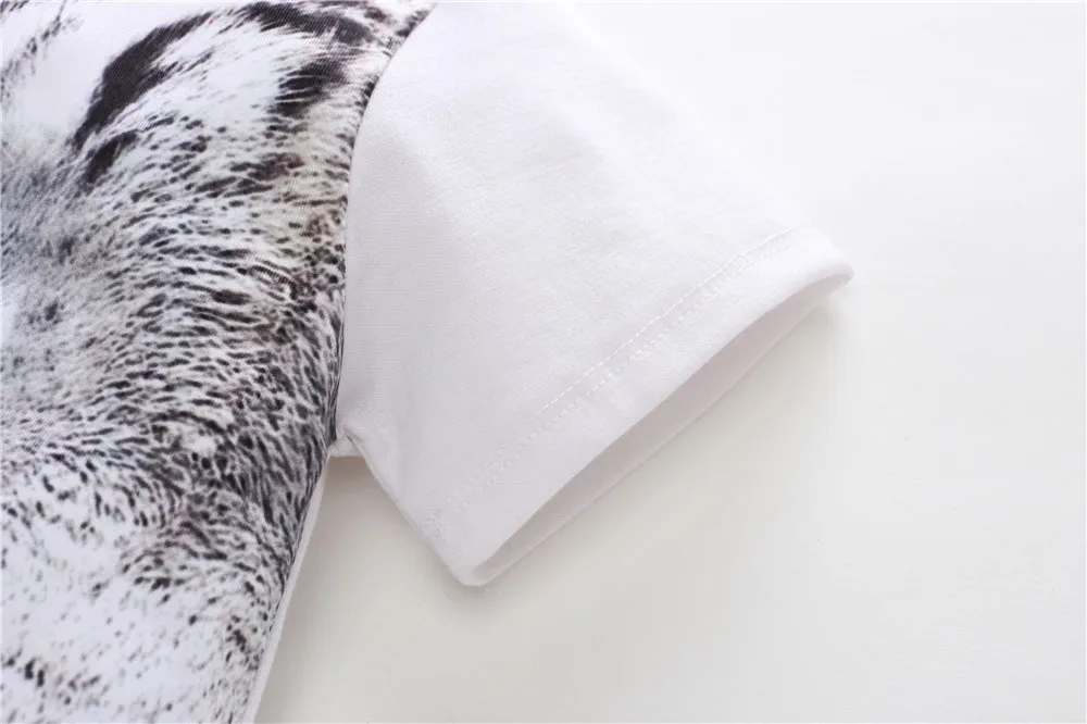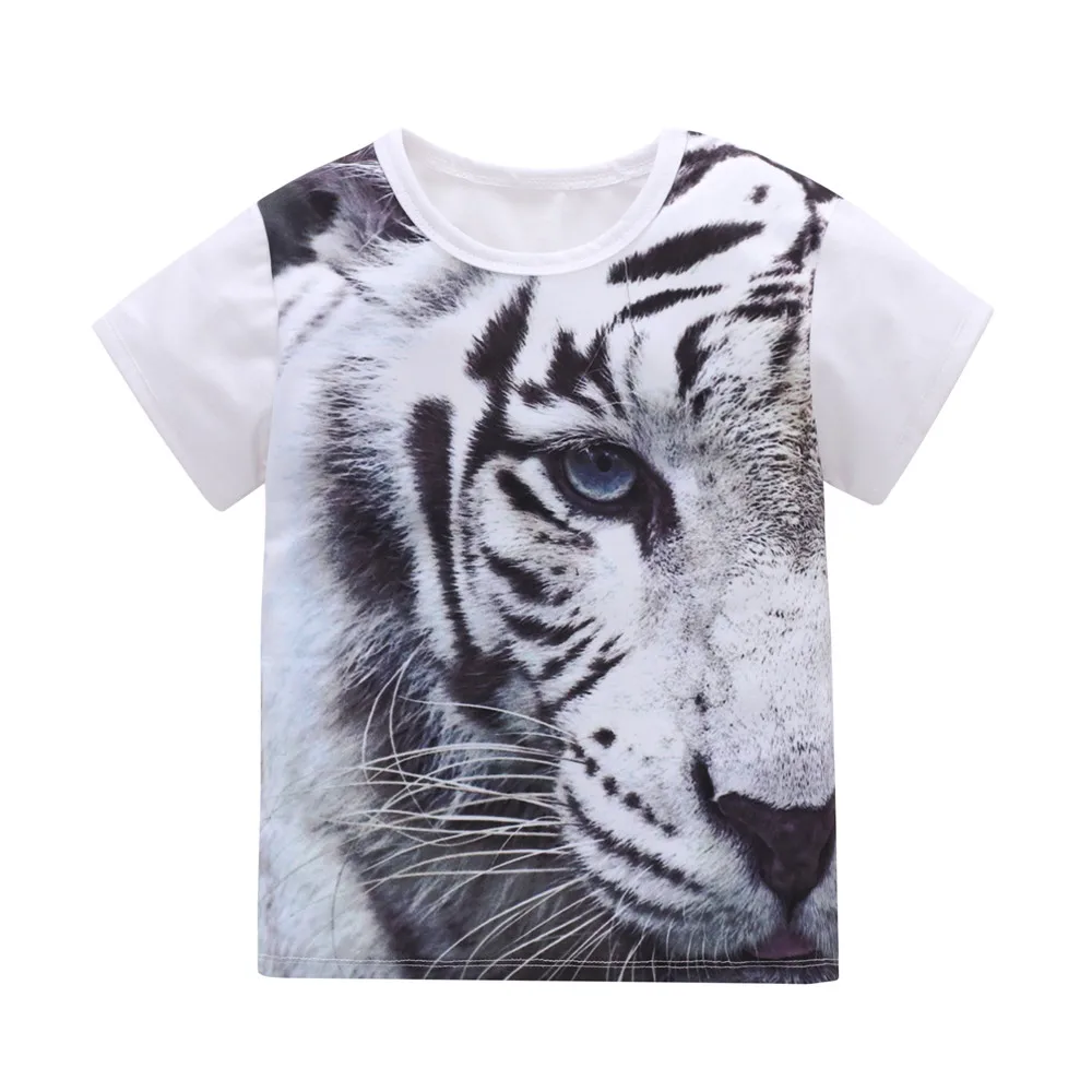 2-8y Kids Boy T-Shirts Summer Boys Clothes Children Cotton Short Sleeve T Shirt Baby Boy 3D Print White Animal Tops Clothing