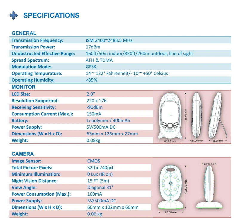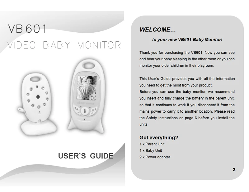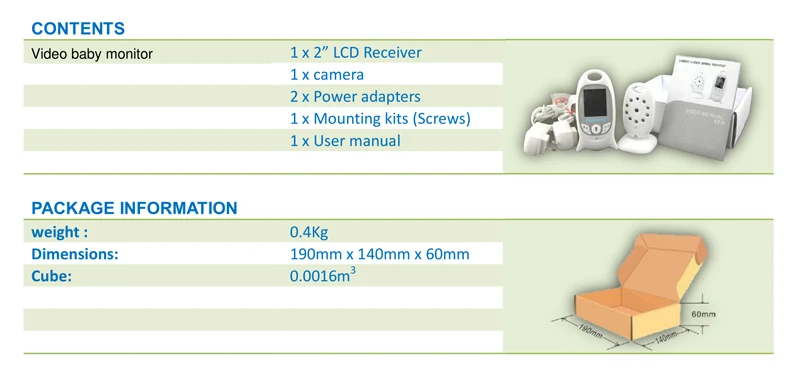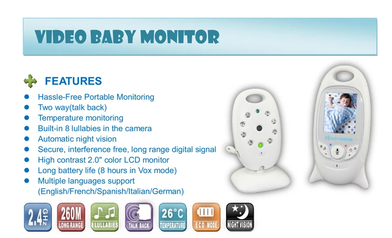 2 inch Color Video Wireless Baby Monitor With Camera Baba Electronic Security 2 Talk Nigh Vision IR LED Temperature Monitoring