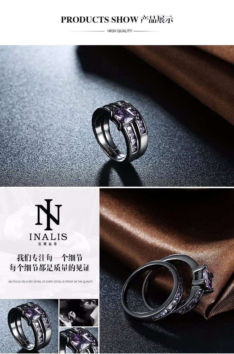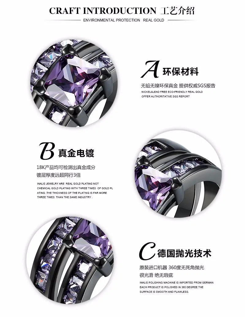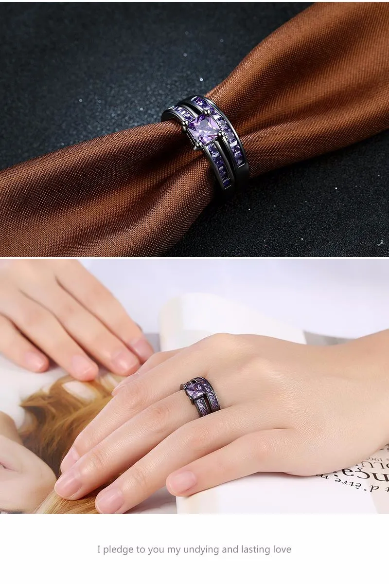 2 Pcs Black Trendy Wedding Ring AAA Purple Zircon Engagement Rings Jewelry For Women Or Men