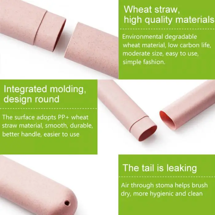 2 Pcs Eco-Friendly Travel Toothbrush Storage Box Wheat Straw Tooth Brush Tableware Fork Spoons Protect Container Case Holde