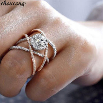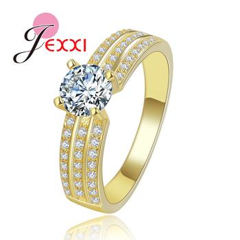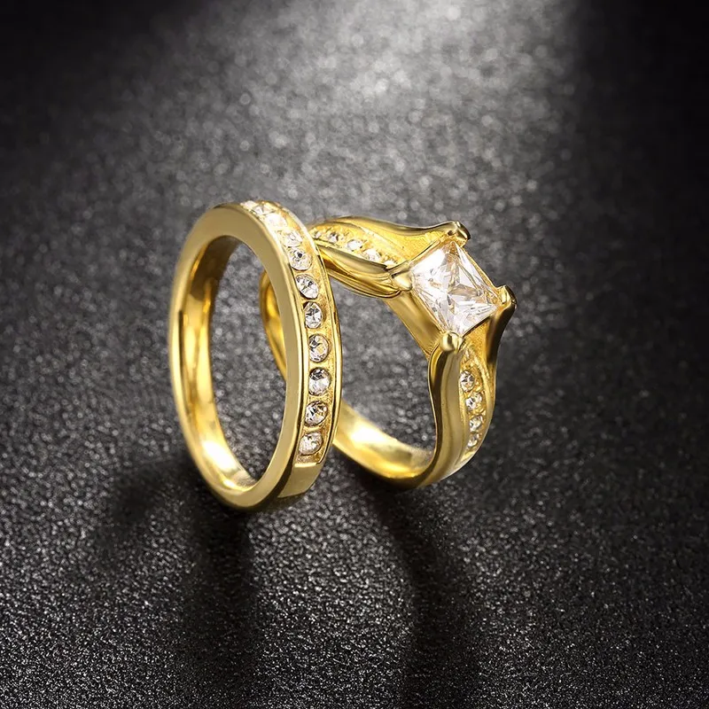 2 PCS Set Zircon 316L Stainless Steel Double Rings For Women Gold Color Crystal Female Engagement Wedding Bridal Finger Rings