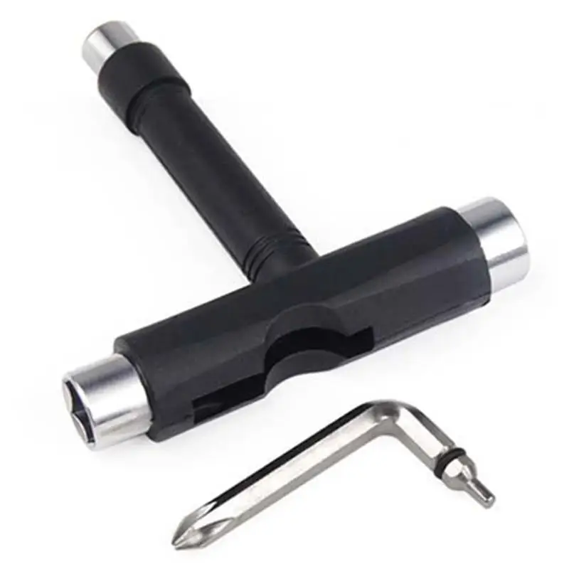 2 Pcs Skateboard Maintenance Tool Skateboard T-Tool Wrench With Allen Key Steel And ABS Plastic Black