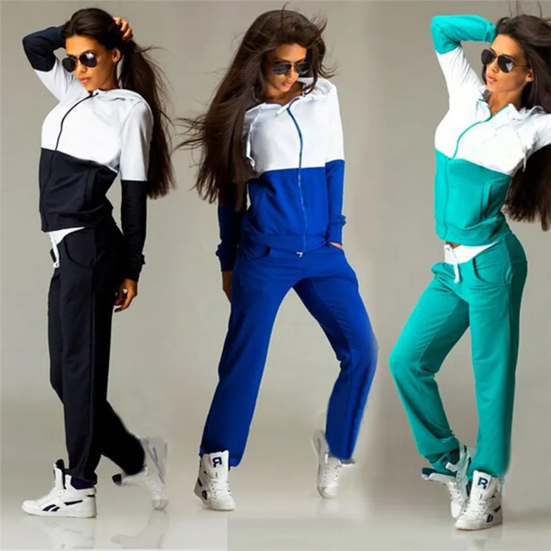 2 Piece Women Running Set 2017 Autumn Long Sleeve Patchwork Hoodies Sweatshirts+Long Pants Casual Tracksuit for Women Sportswear
