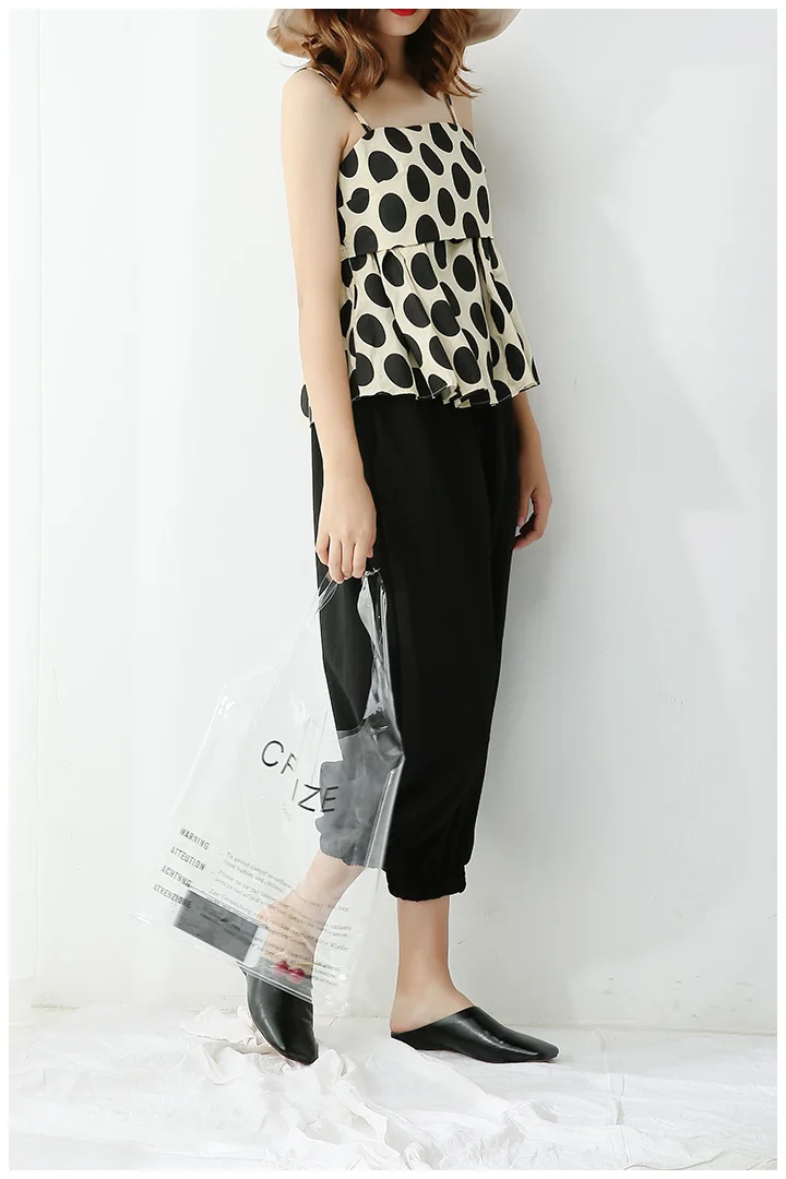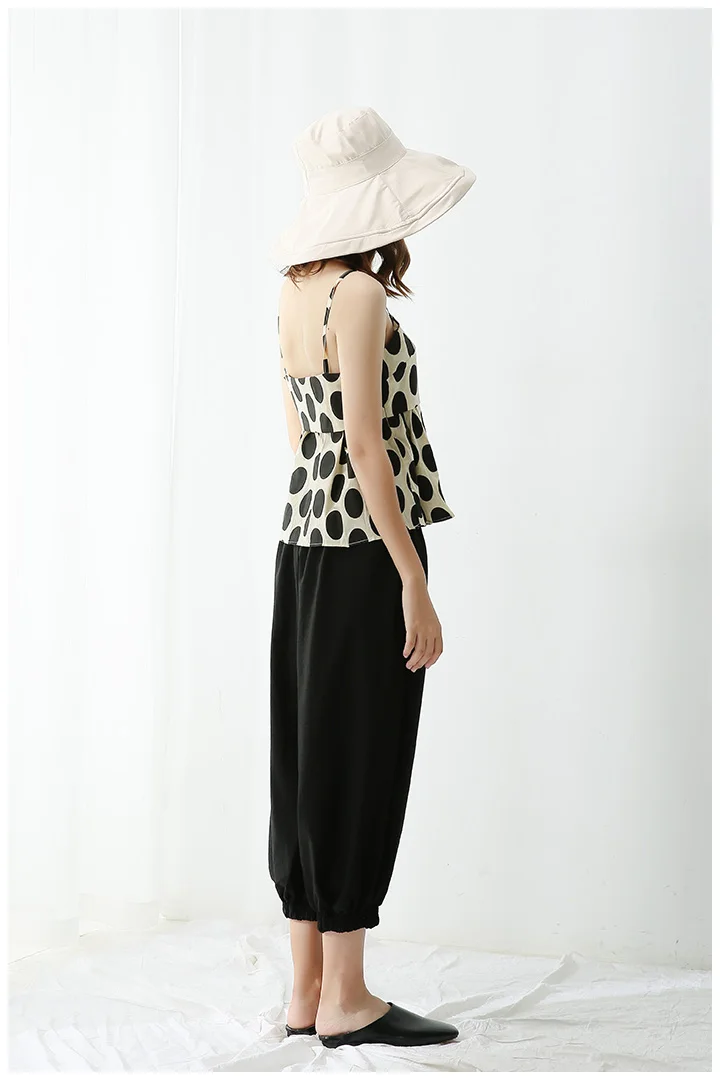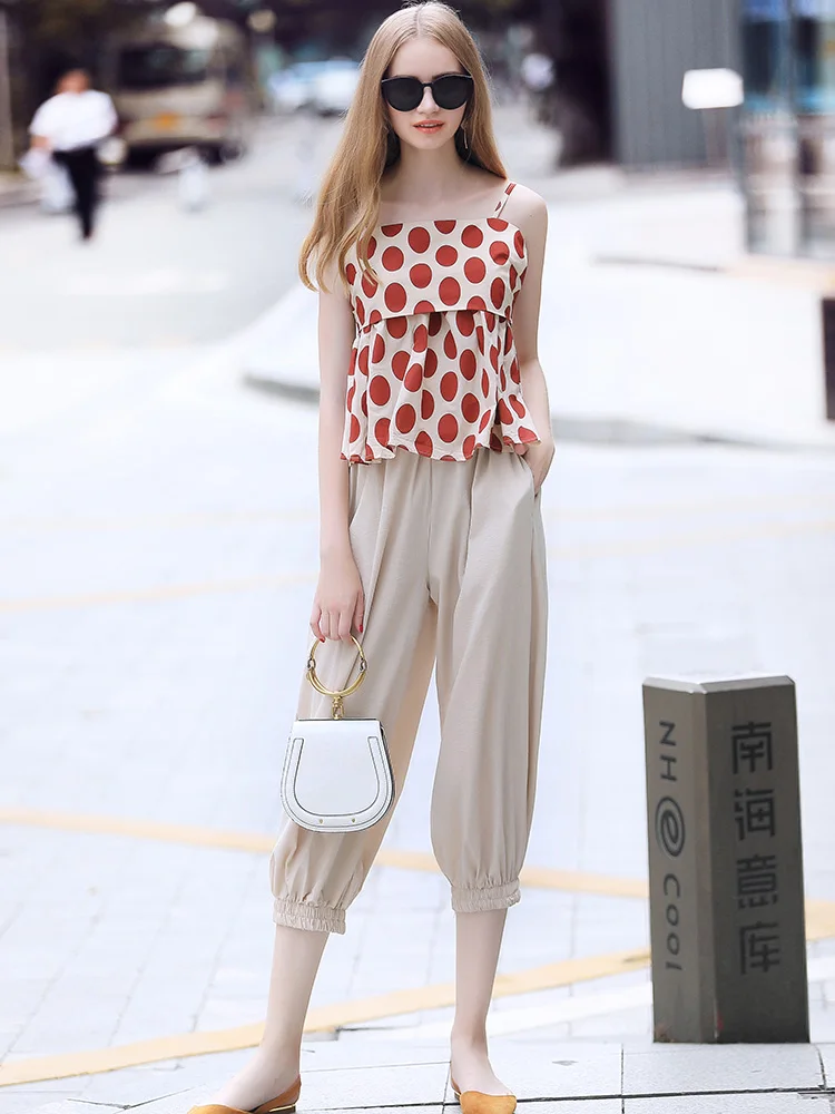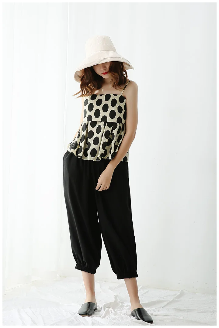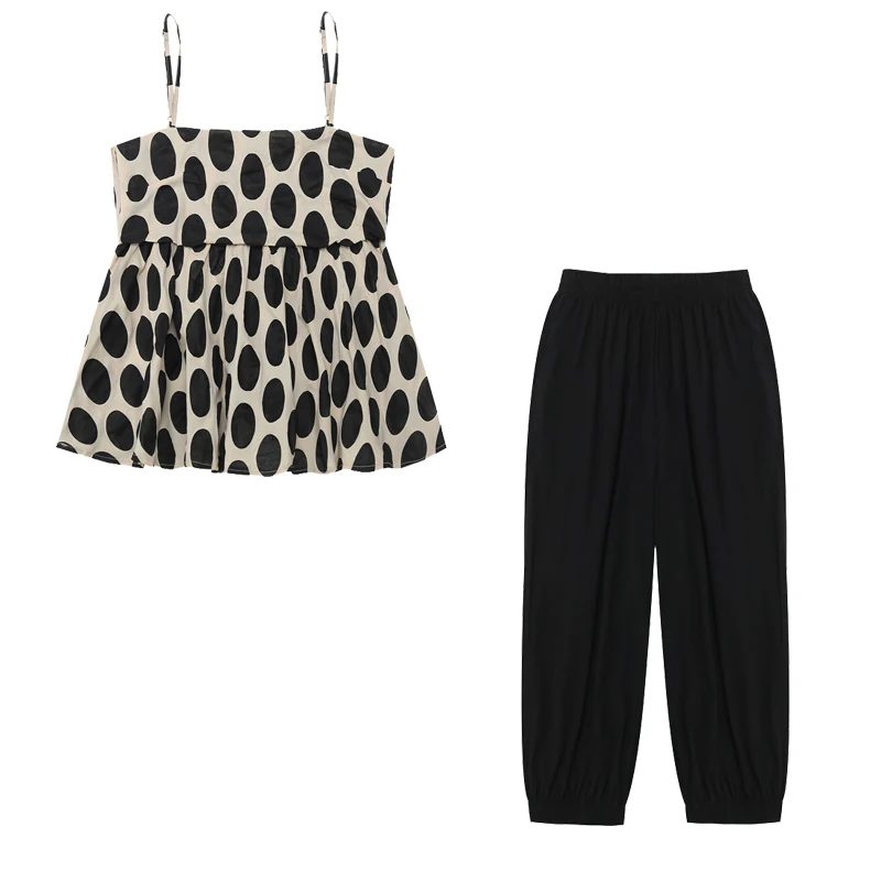 2 Pieces Summer Women’s Clothing Set Linen Cotton Polka Dots Sleeveless Strap Blouse Tops And Harem Pants Suits Tracksuits NS957