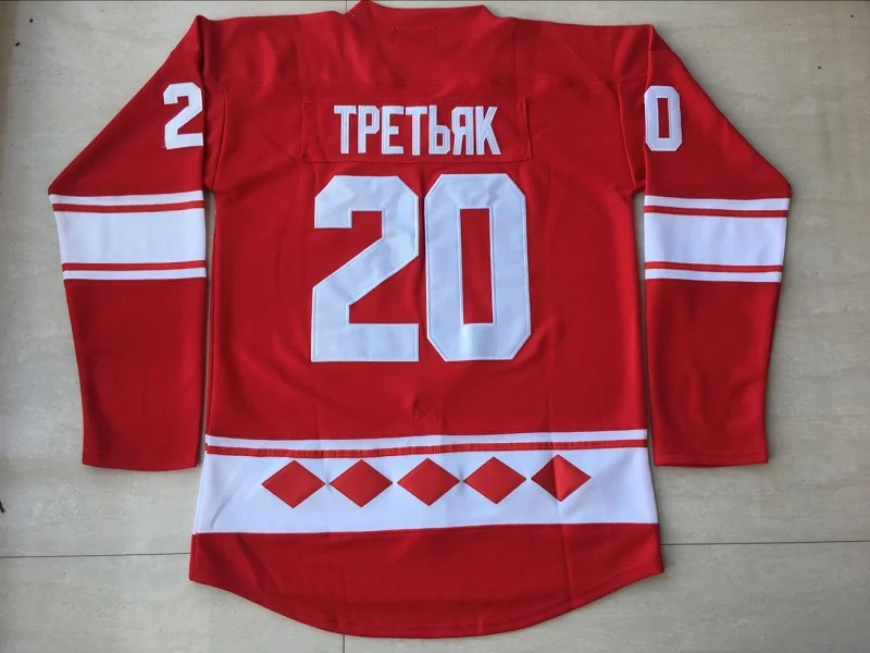 20 Vladislav Tretiak Hockey Jersey CCCP RUSSIA Red Ice Hockey Jersey Stitched Movie Hockey Jersey Size S-3XL Viva Villa