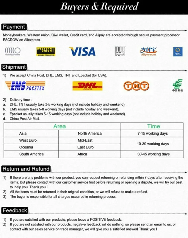 *You can submit refund requests within 15 days after the guaranteed period for delivery (45 days) has expired. You can do it by sending a message on Contact Us page