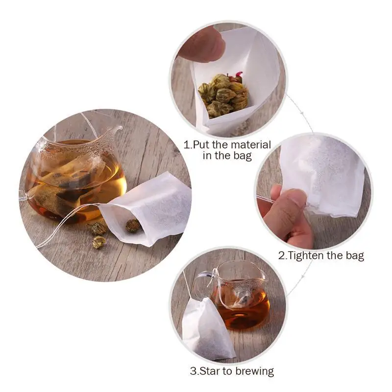 200pcs Non-Woven Fabrics Tea Bag Drawstring Teabags Filter Paper Empty Tea Pouch Bags for Loose Leaf Tea Powder Herbs