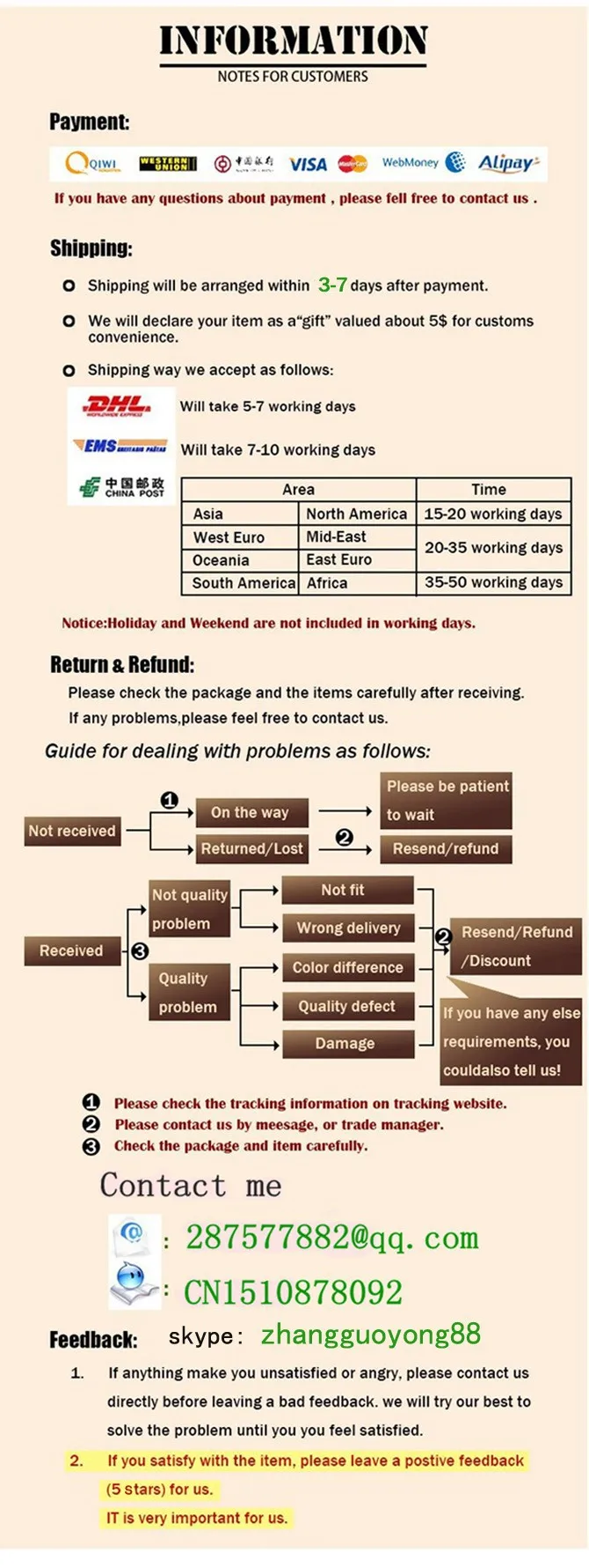 *You can submit refund requests within 15 days after the guaranteed period for delivery (45 days) has expired. You can do it by sending a message on Contact Us page