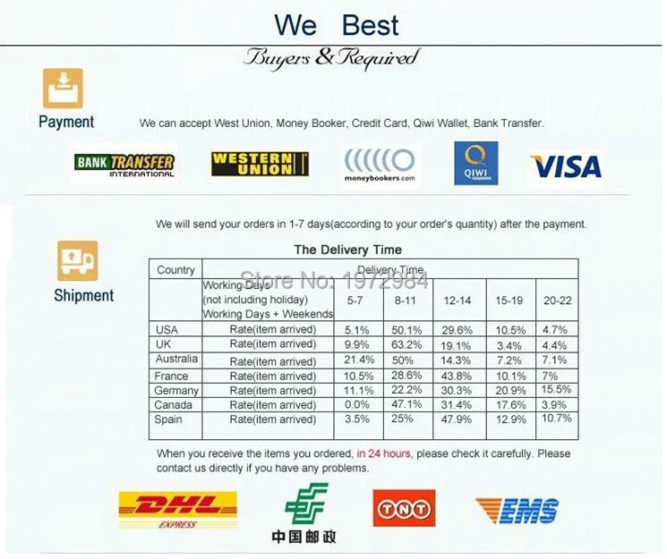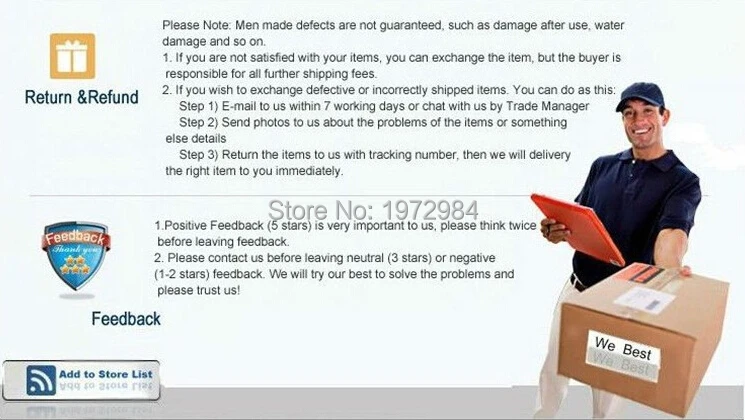 • If you did not receive the product within the guaranteed time( 45 days not including 2-5 day processing) you can request a refund or a reshipment.