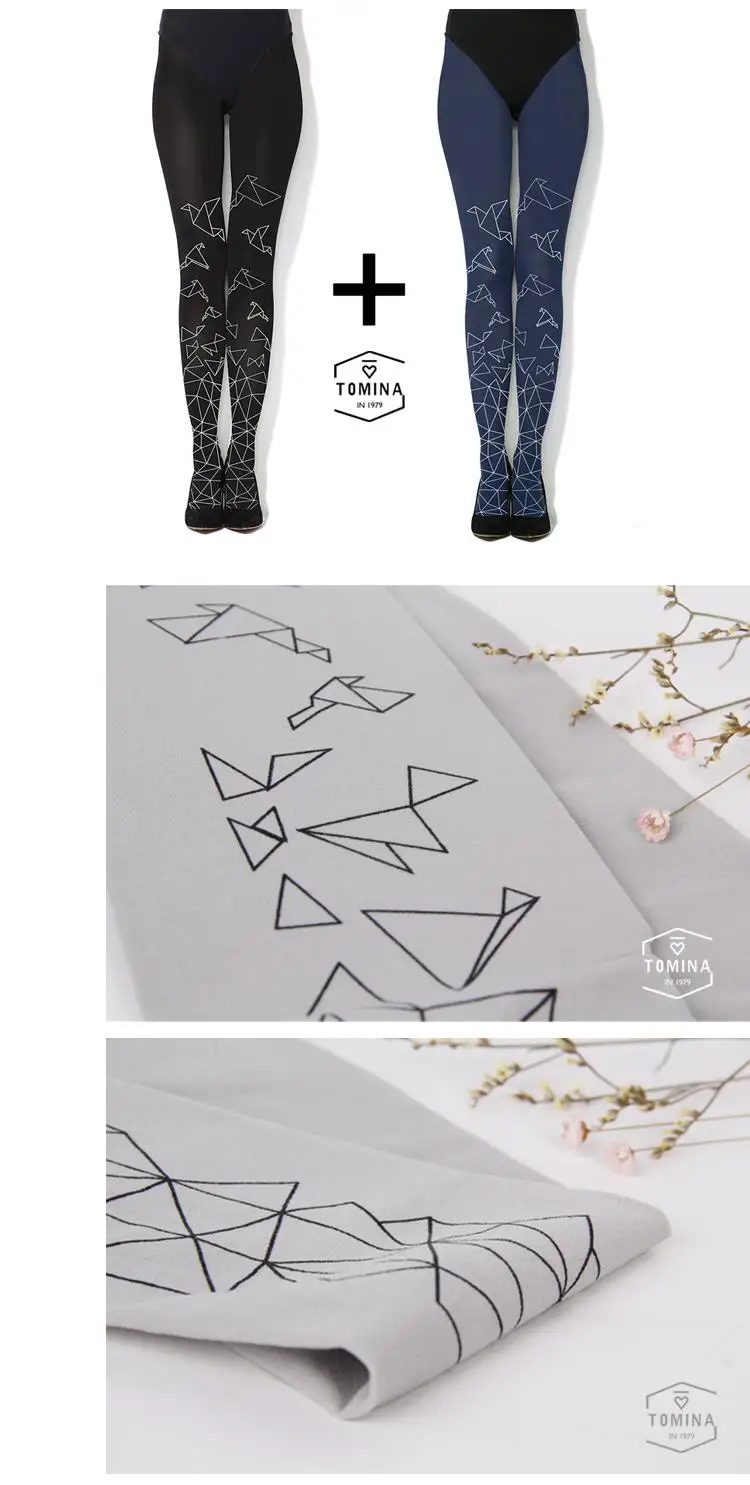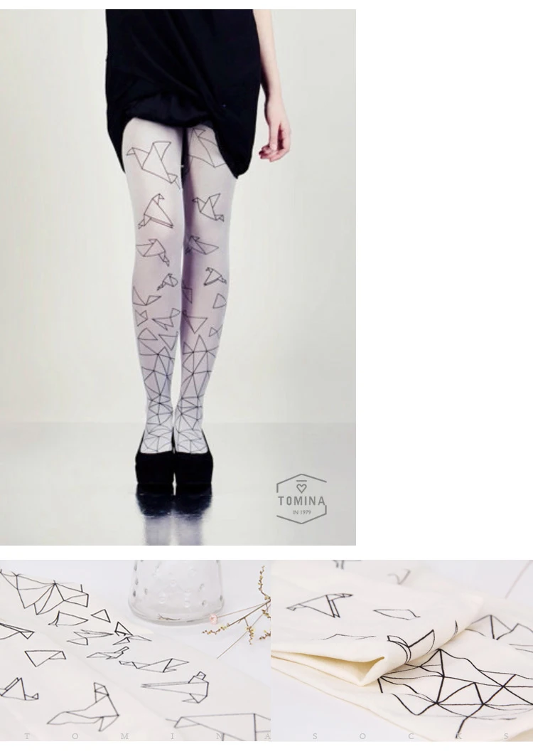 2016 fall new women’s tights high quality european design hand-painted paper cranes printing 80D velvet pantyhose for women