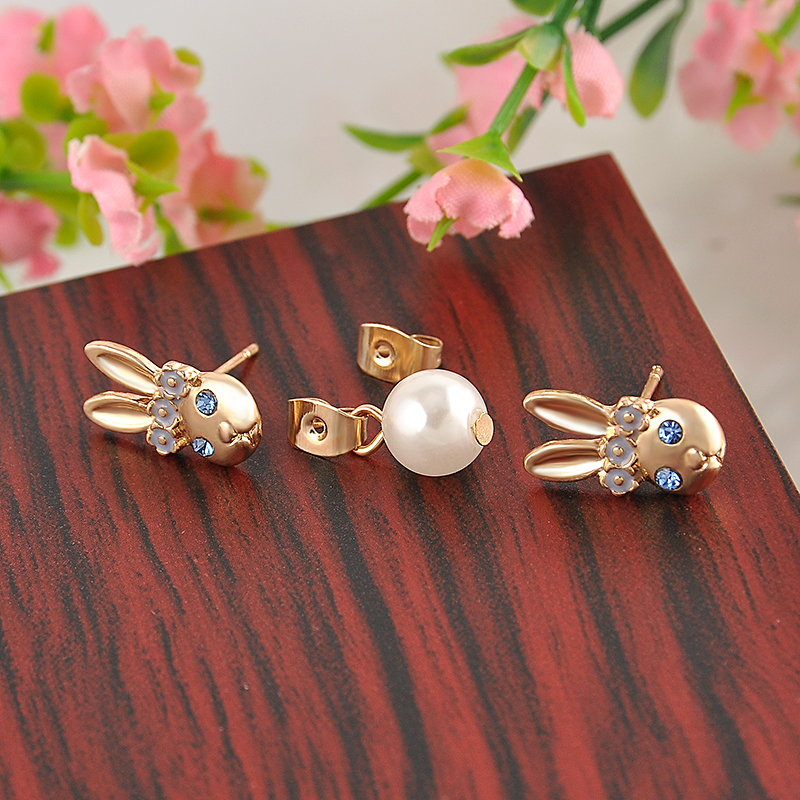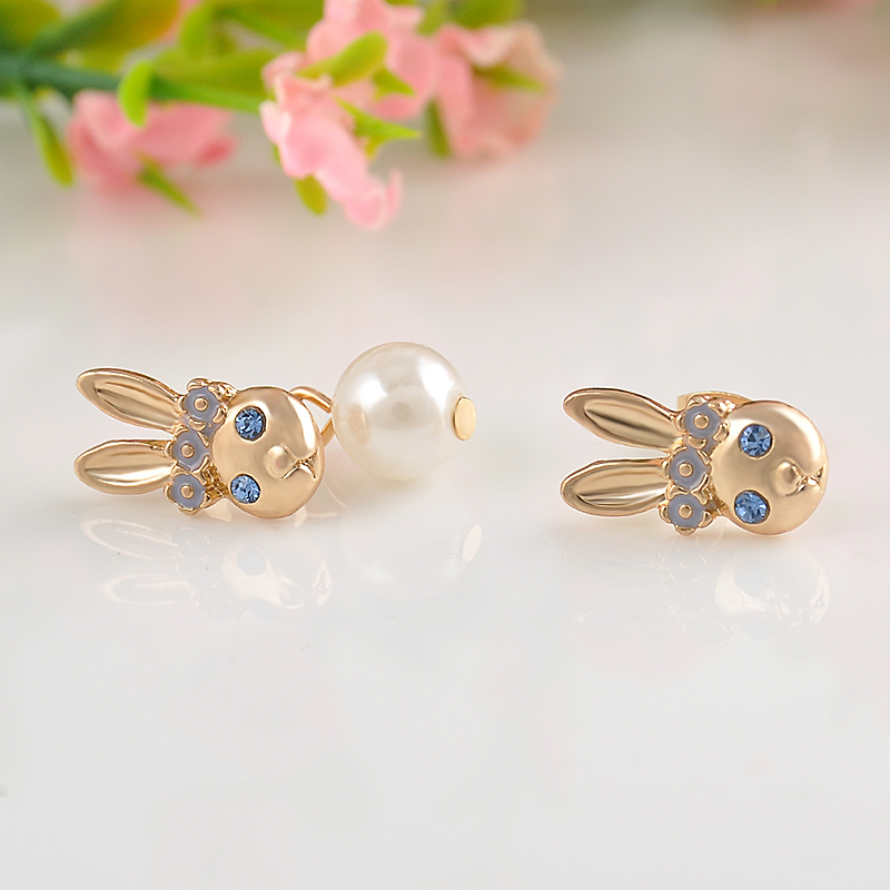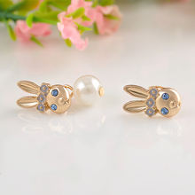 2016 Fashion Gold Plated Asymmetry Cute Rabbit Stud Earring Pearl Earrings for women Statement Jewelry Gift Free shipping