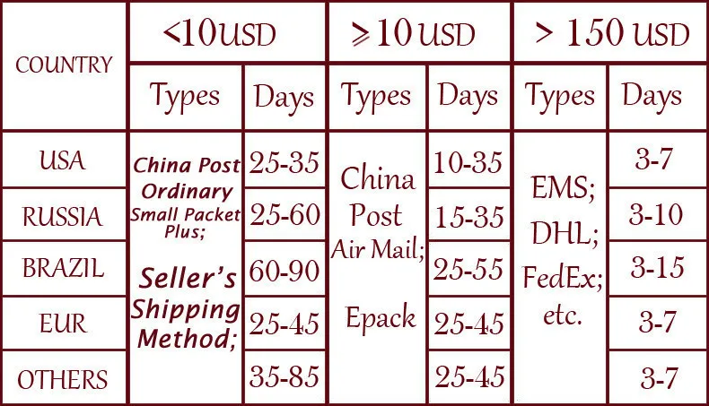 Order Value< $10 24 Countries Free Shipping Via China Post Ordinary Small Packet Plus.