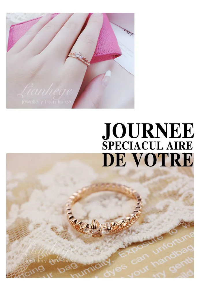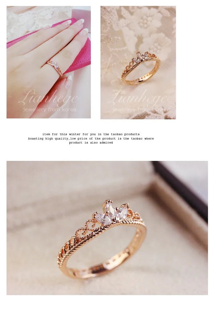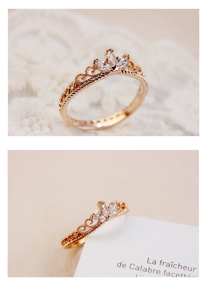 2016 new arrival Rose Gold CZ Dainty Crown Ring free shipping