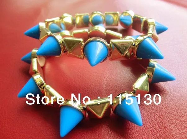 Fashion Bracelets 2013 Rock Punk Blue Spike Rivets Bracelets Golden Pyramid Stud Bracelet Wristband For Women Wholesale JewelryUS$ 2.28/piece |