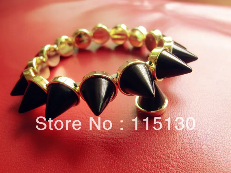Fashion Gold Punk Rock Black Spike Rivet Bracelets Bangles Golden Pyramid Stud Bracelet Wholesale Fashion Jewelry Free ShippingUS$ 2.68/piece |