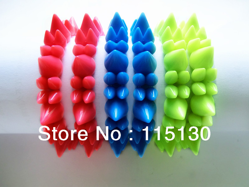New Arrival Punk Rivets Fluorescent crackle Acrylic Spike Cone Stretched Bracelets Bangles Wholesale Free Shipping Fashion Jewel US$ 4.27/lot |