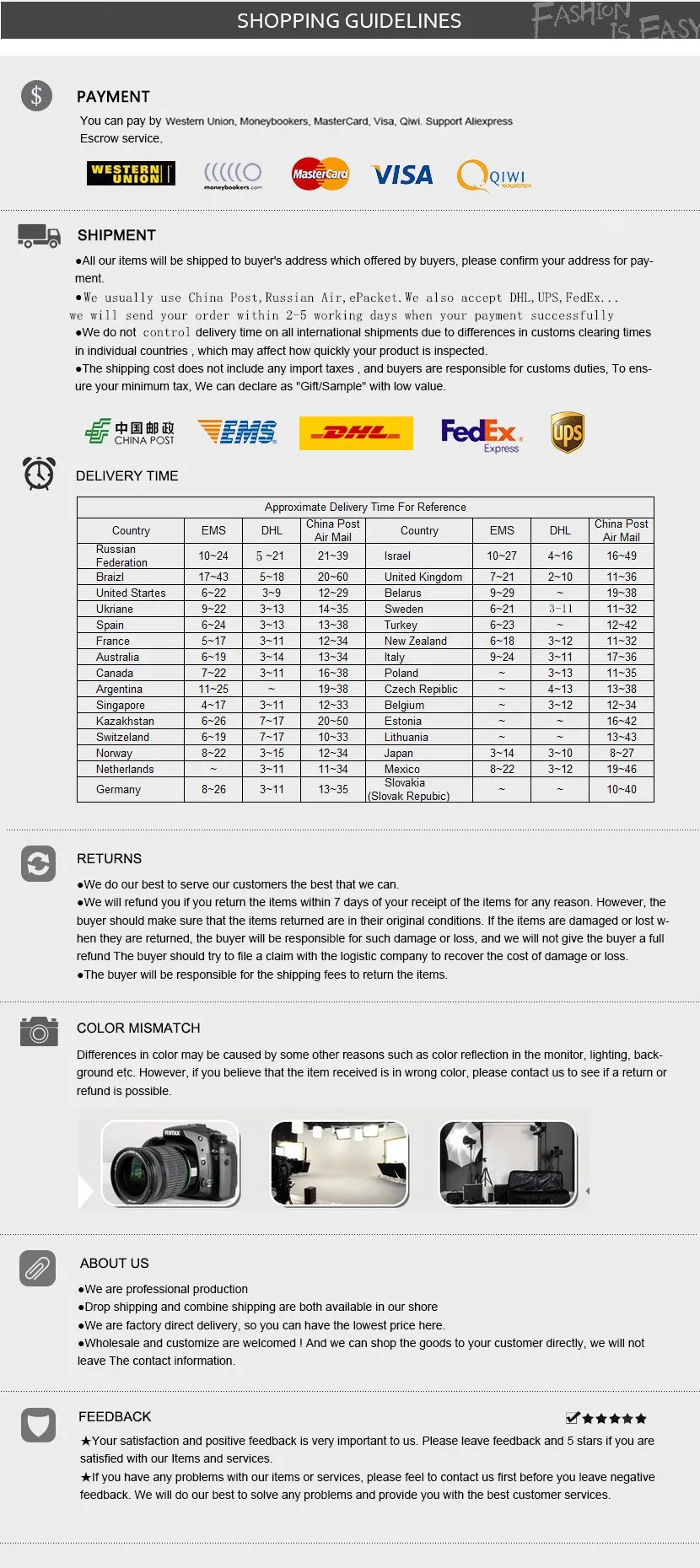 *You can submit refund requests within 15 days after the guaranteed period for delivery (45 days) has expired. You can do it by sending a message on Contact Us page
