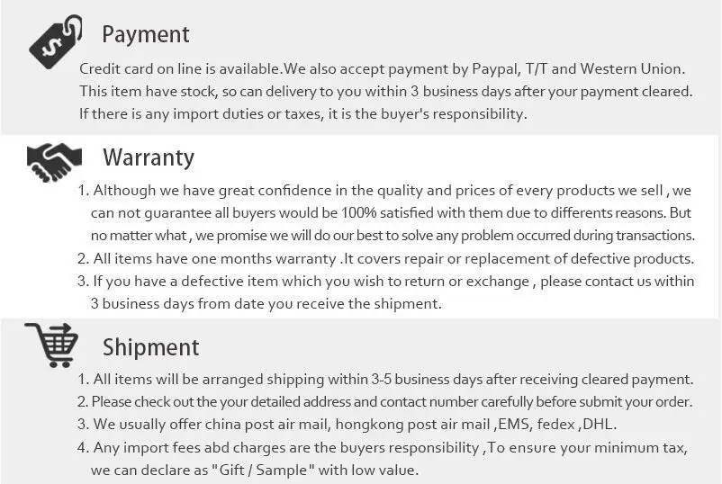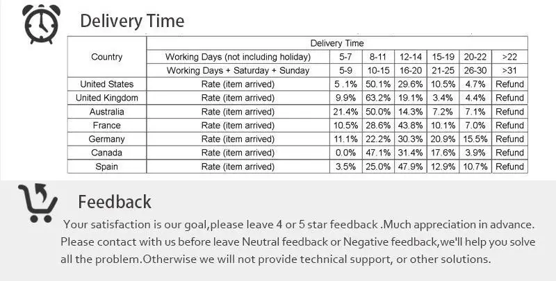 • If you did not receive the product within the guaranteed time( 45 days not including 2-5 day processing) you can request a refund or a reshipment.