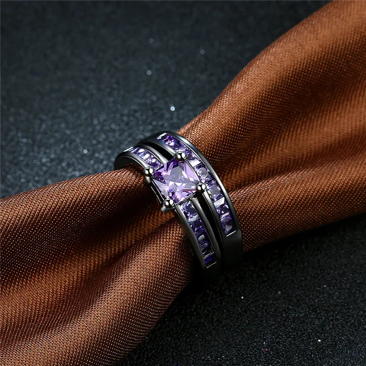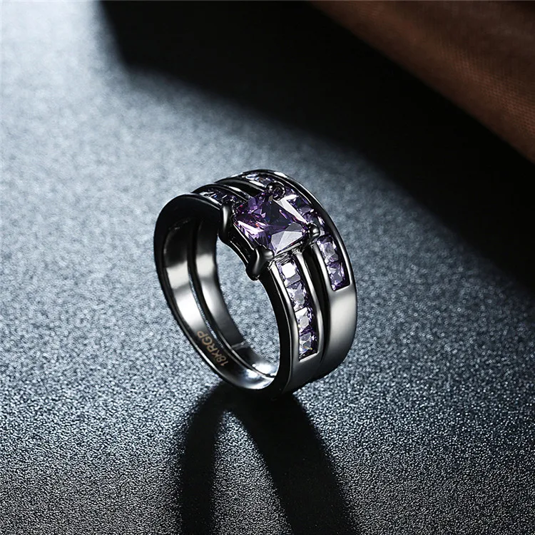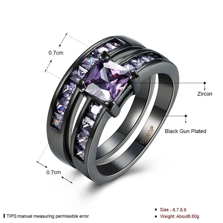 2017 Crystal Fashion Ring Set Black Gold Color Engagement Jewelry Wedding Rings For Women ring cz