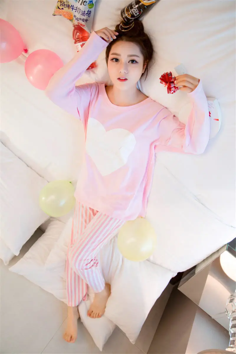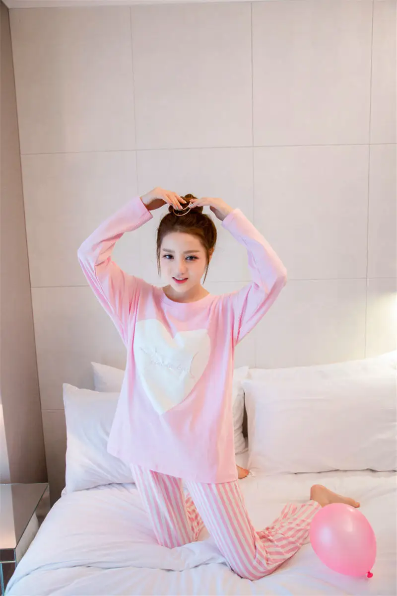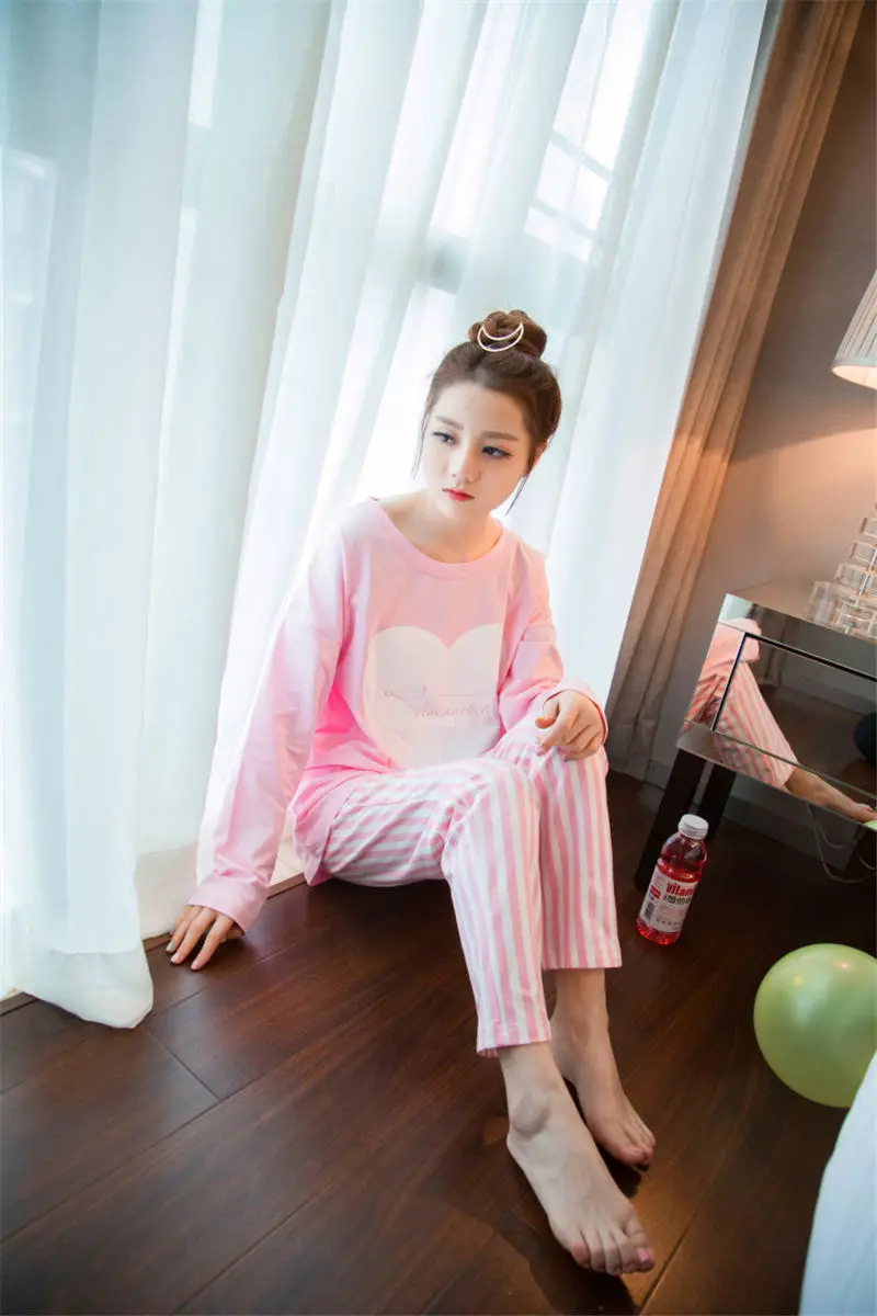 2017 Fashion autumn winter women’s pajamas set,new women cotton clothing ,sweet female lady twinset nightwear sleepwear