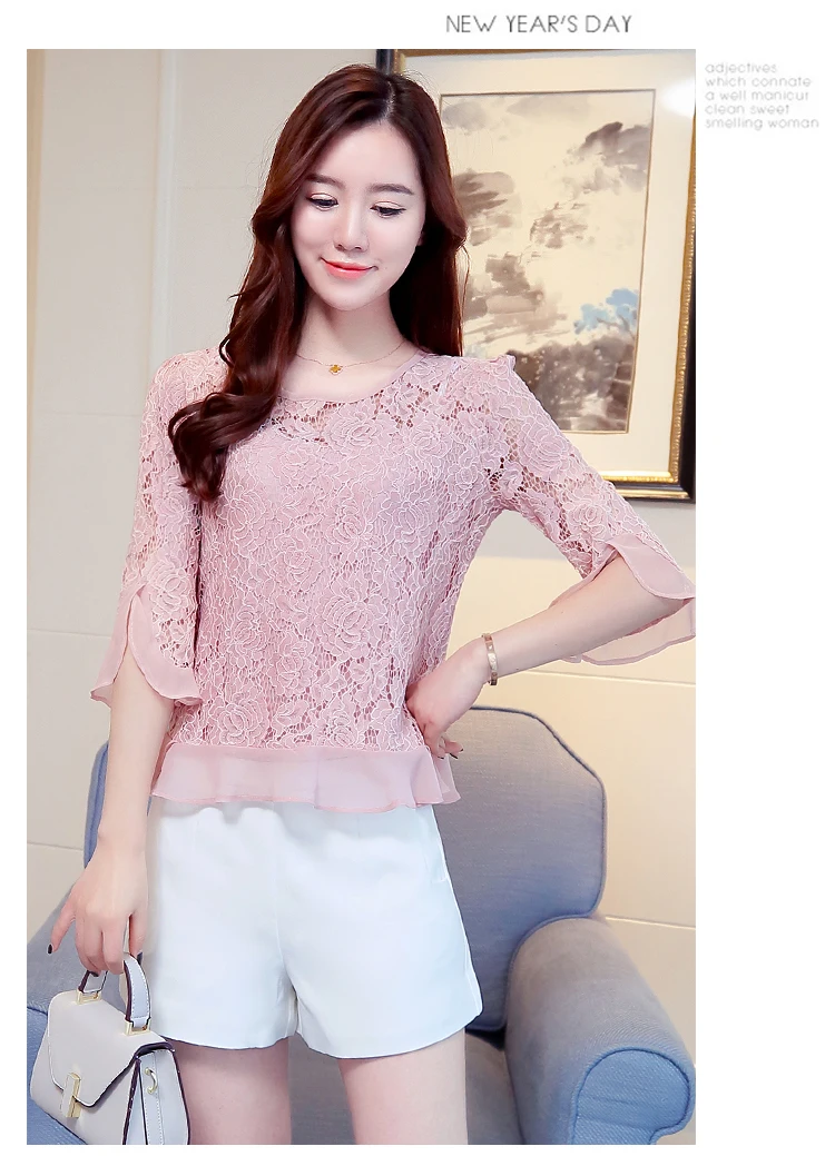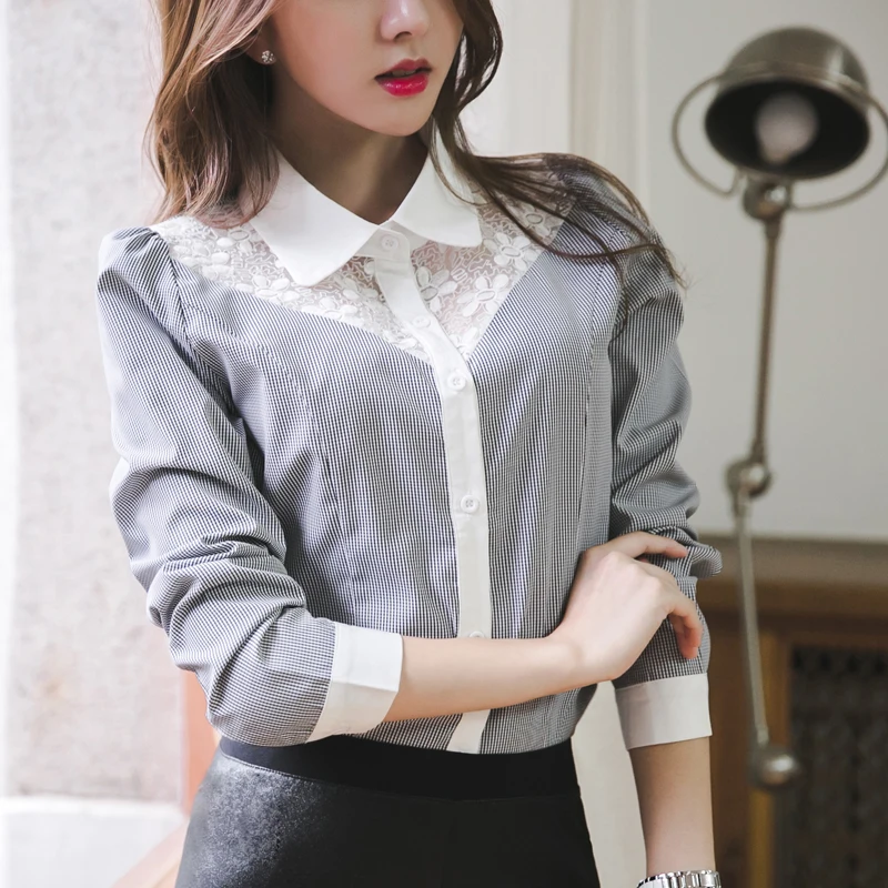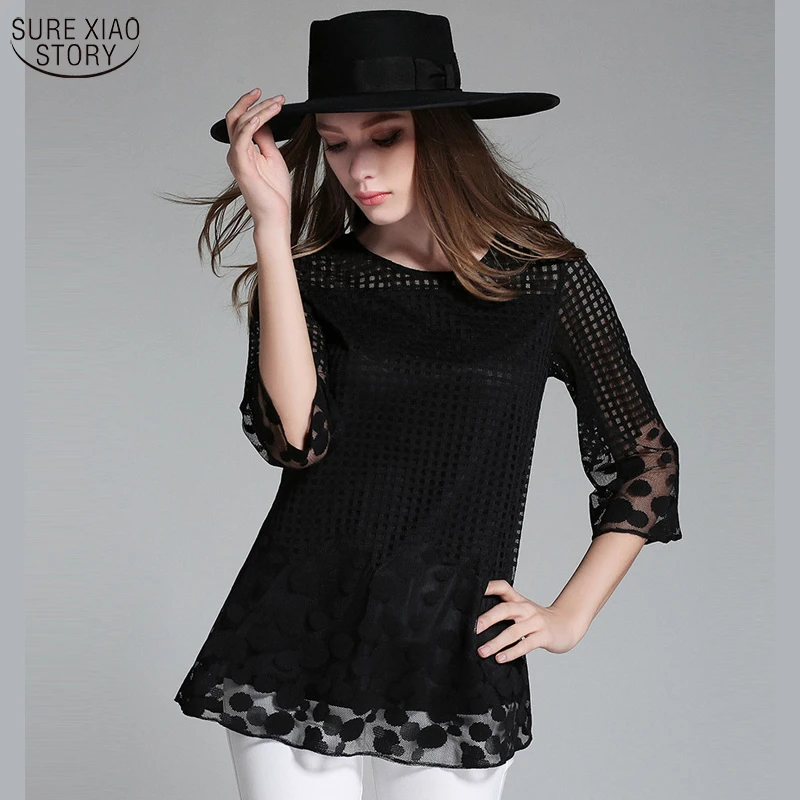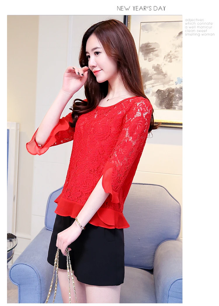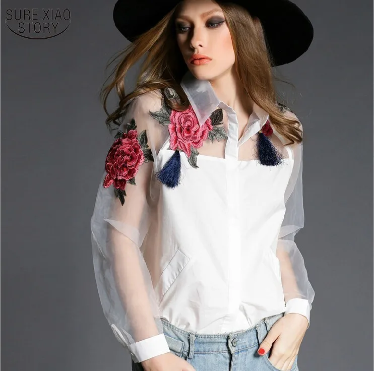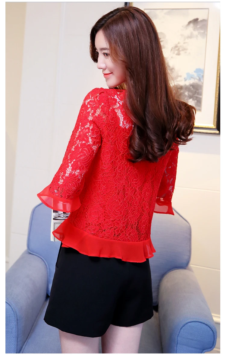 2017 Fashion long sleeve blouse shirts women fashion beaded Blusas femininas Sexy Plus size Lace Tops Women clothing 109C 30