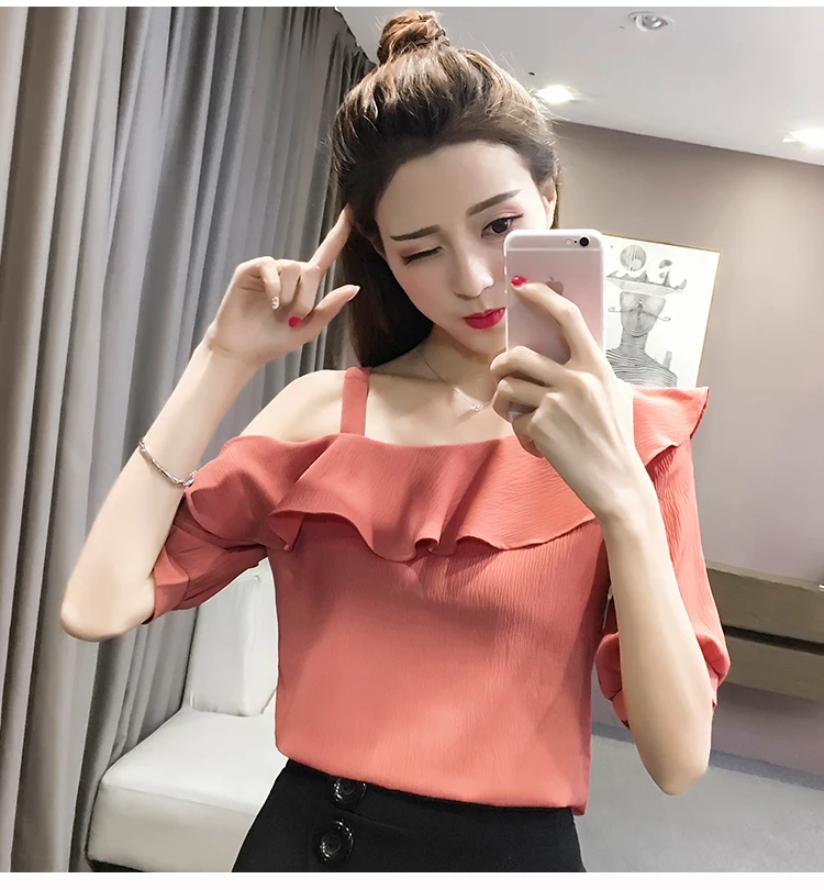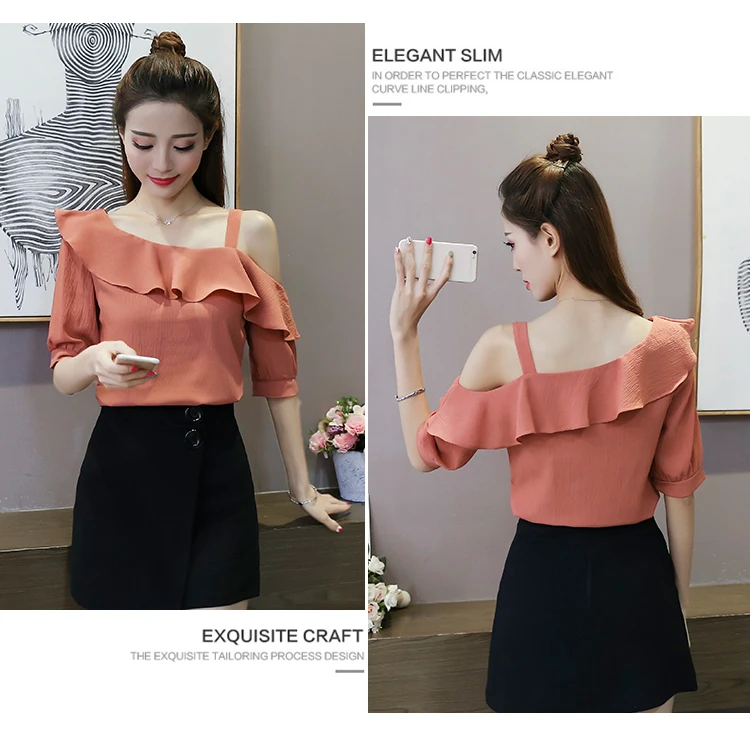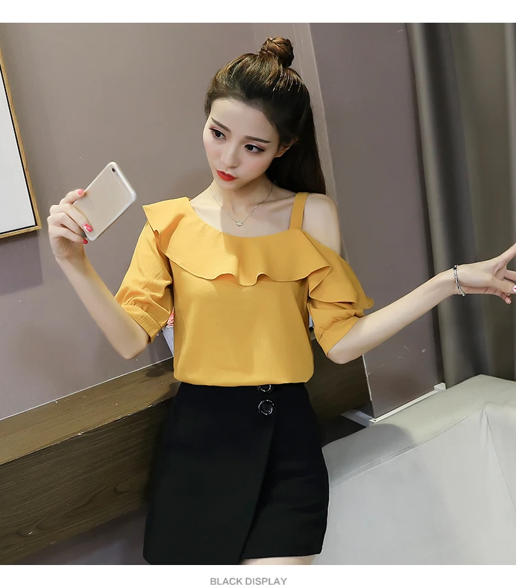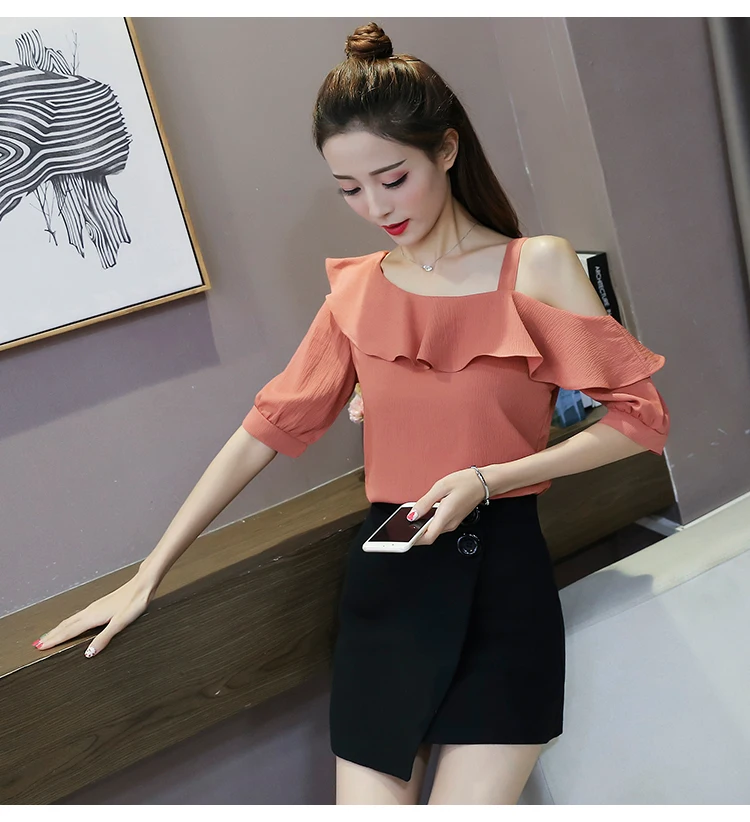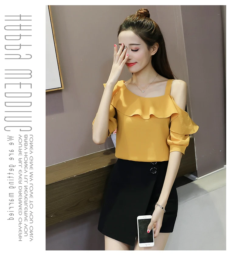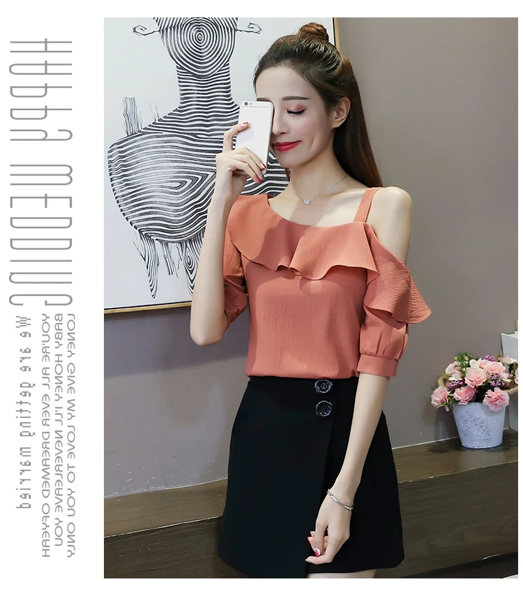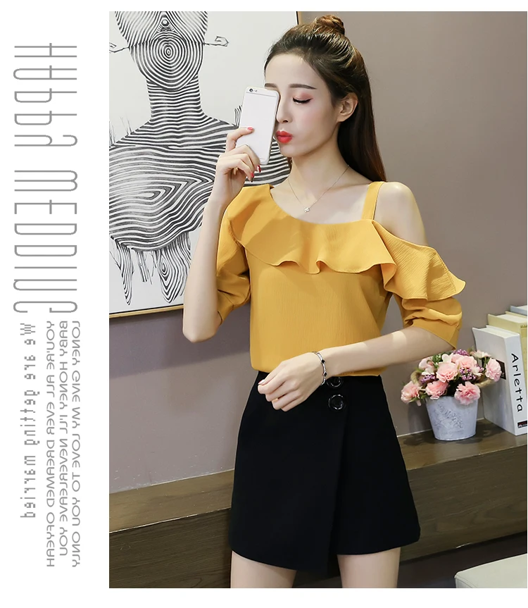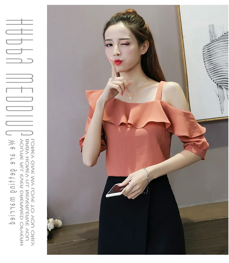 2017 half sleeves slash neck solid chiffon women blouse fashion lotus leaf Strapless casual sweet women shirt top blusas 123J 30