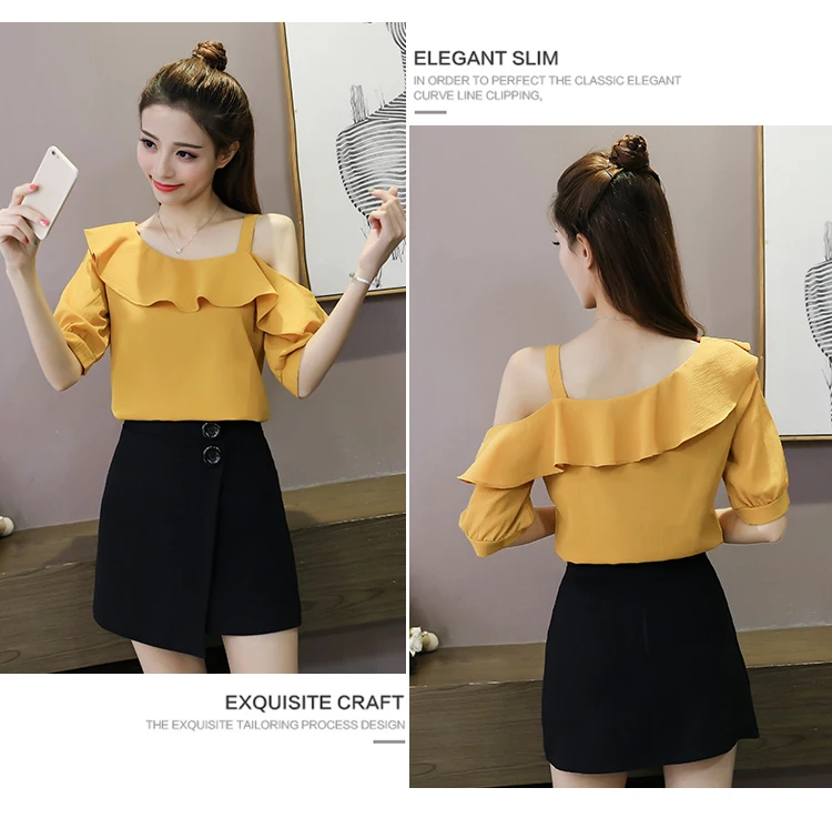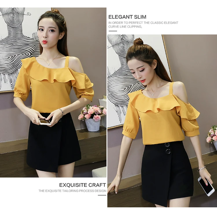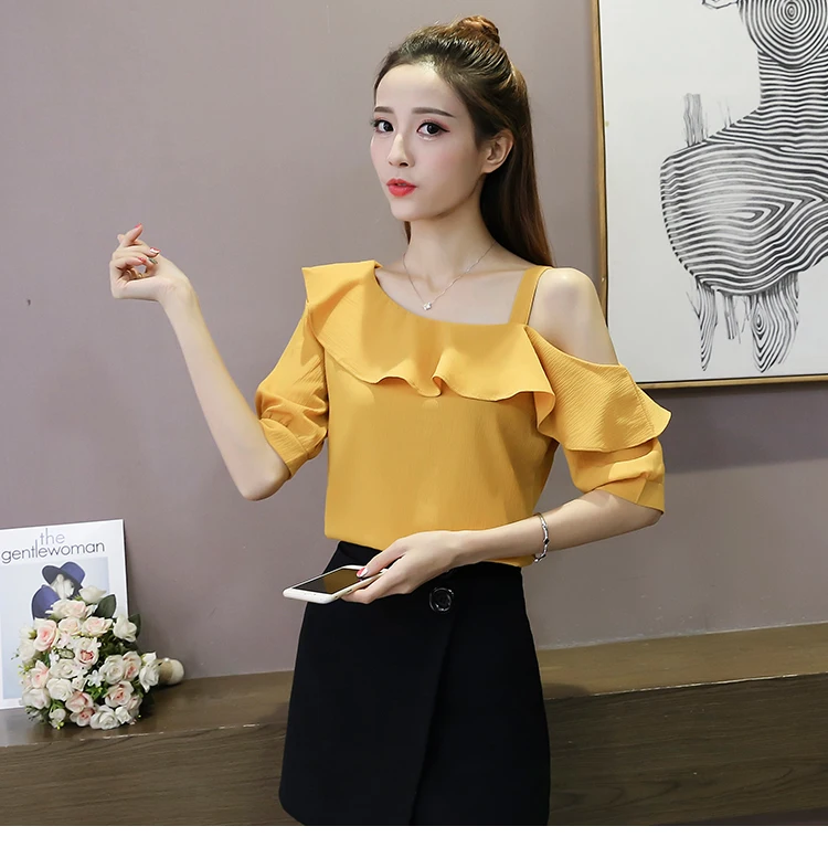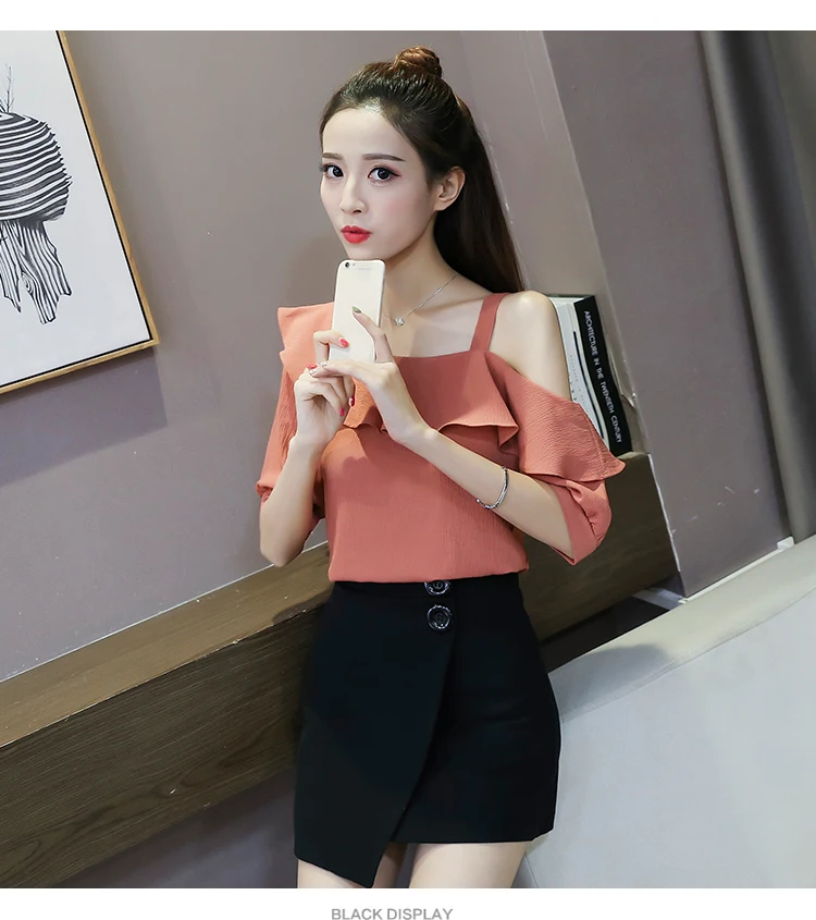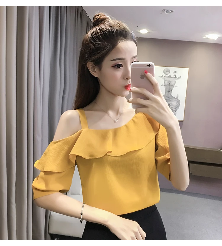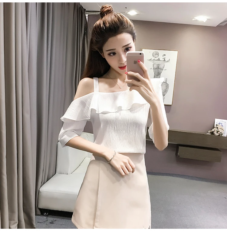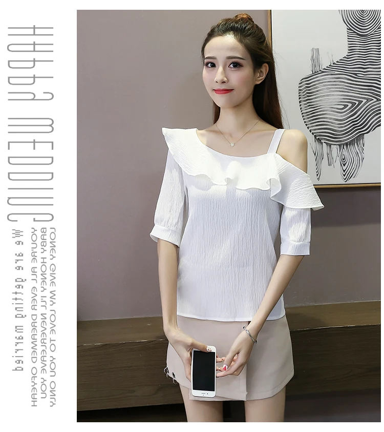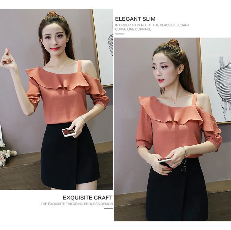 2017 half sleeves slash neck solid chiffon women blouse fashion lotus leaf Strapless casual sweet women shirt top blusas 123J 30