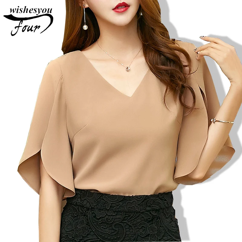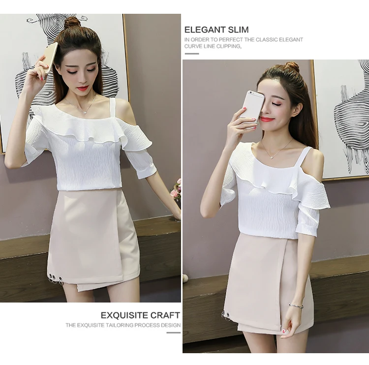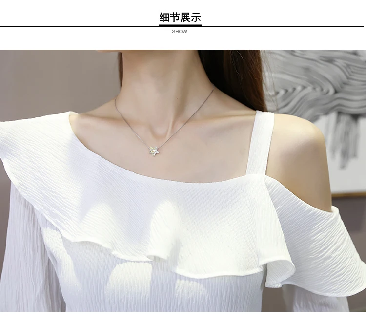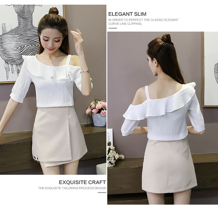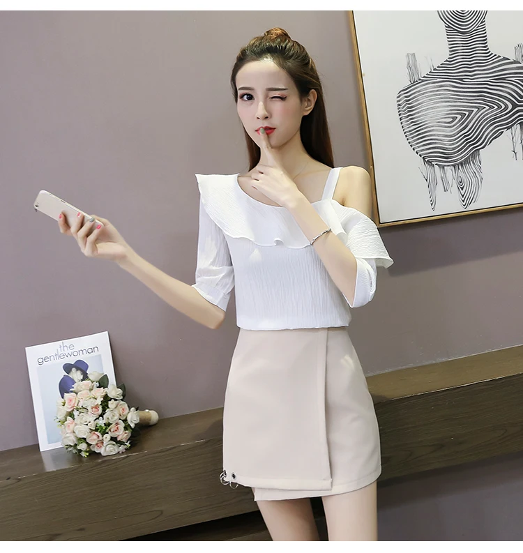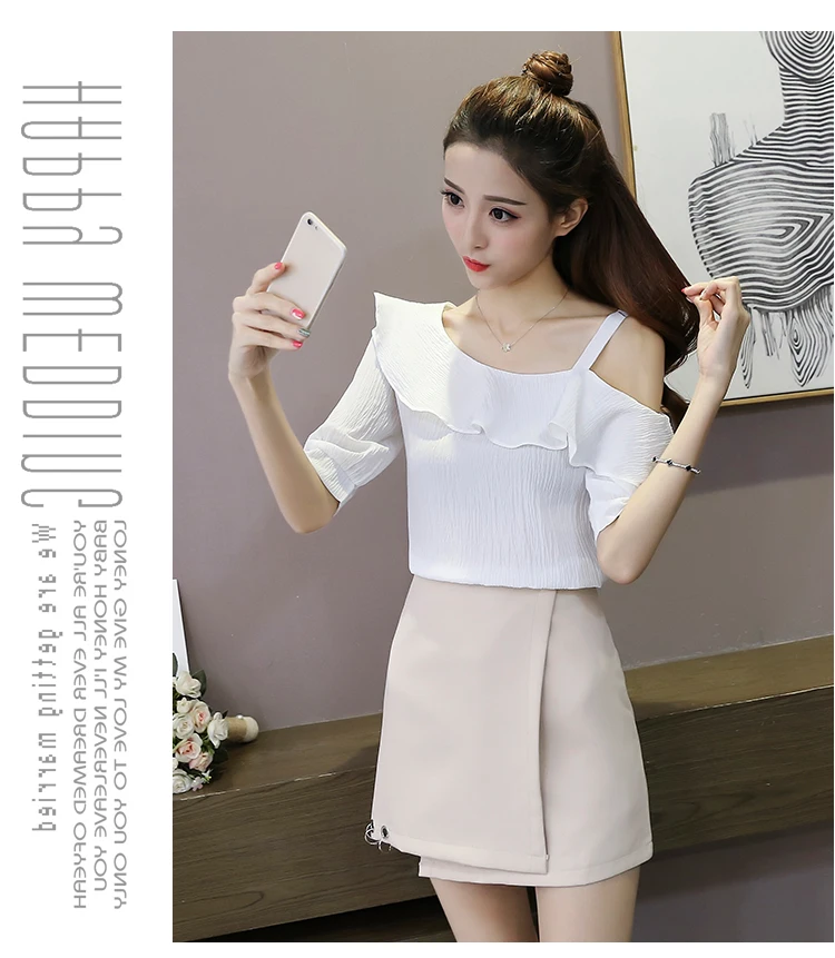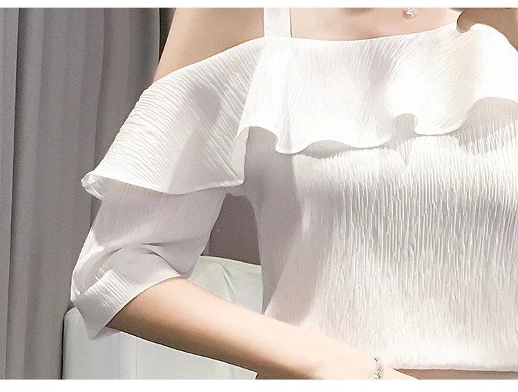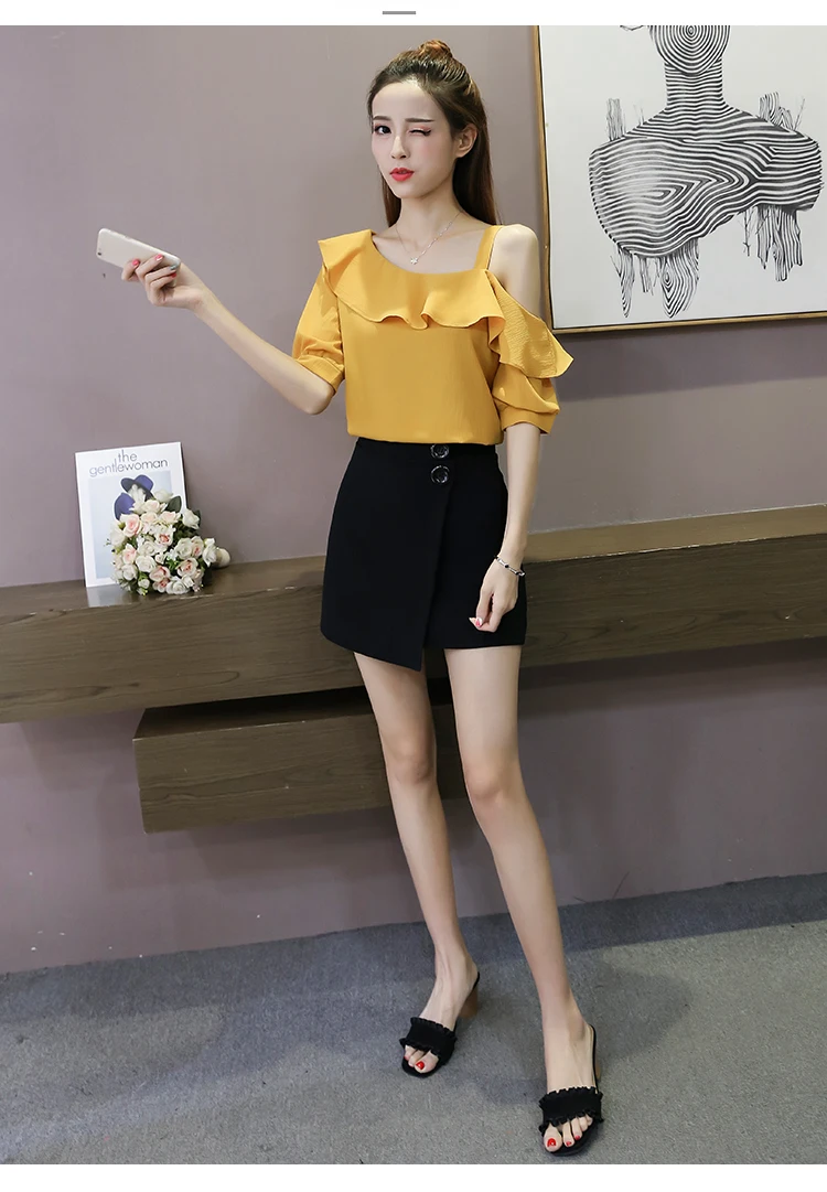 2017 half sleeves slash neck solid chiffon women blouse fashion lotus leaf Strapless casual sweet women shirt top blusas 123J 30