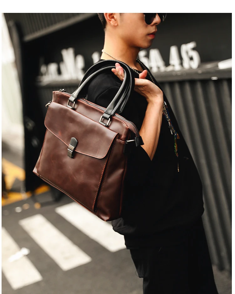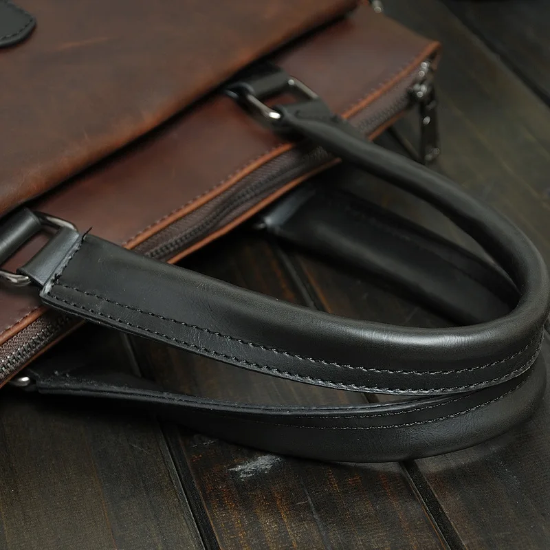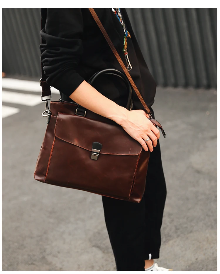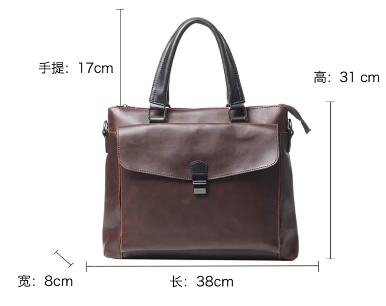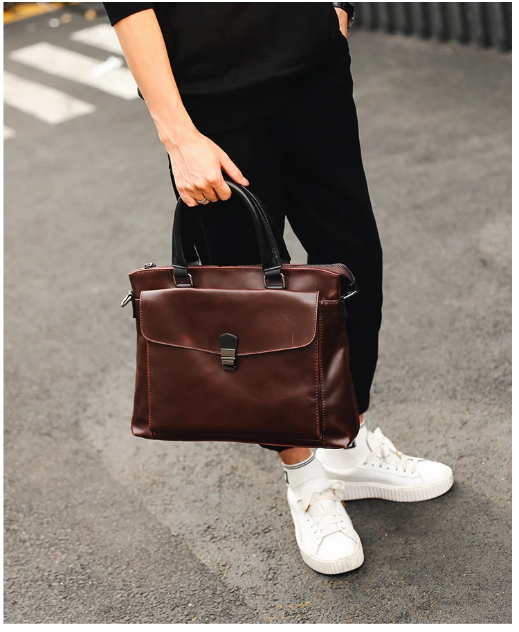 2017 Men 13 Inch Laptop Briefcase Bag Crazy Horse Leather Vintage Business Bag With Sholder Belt