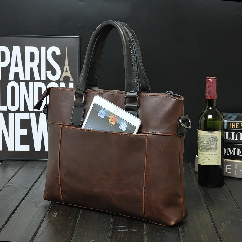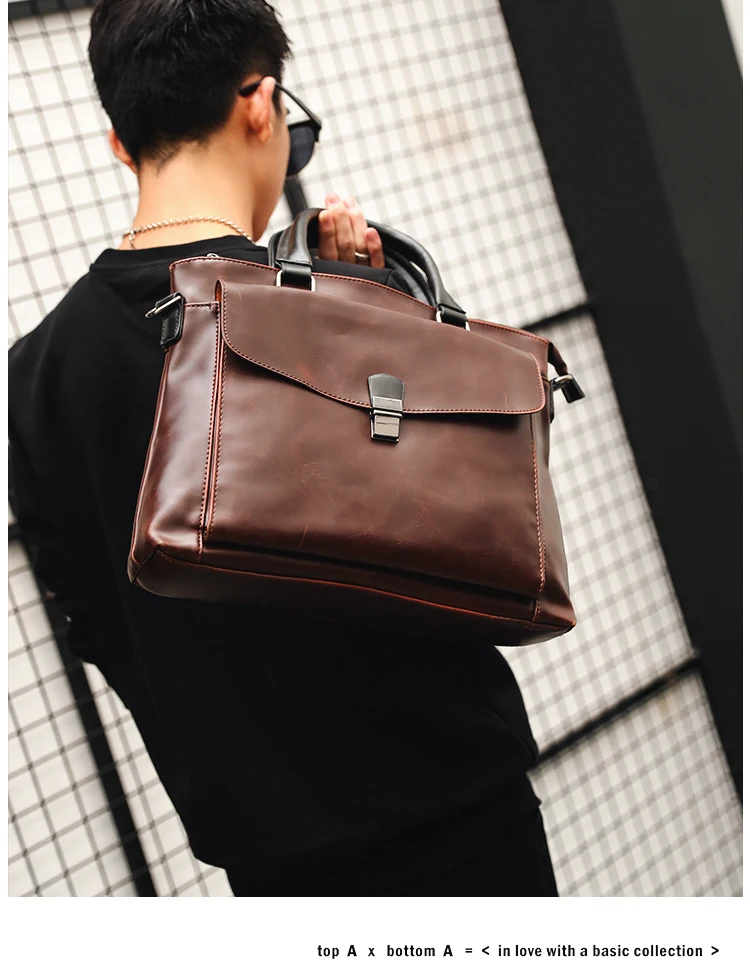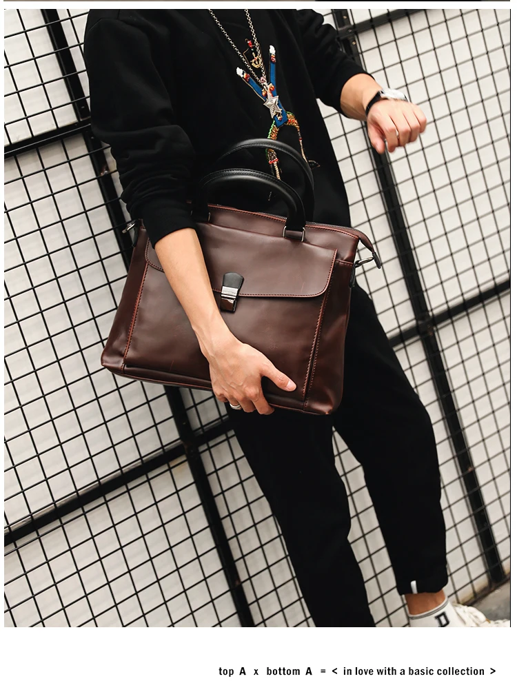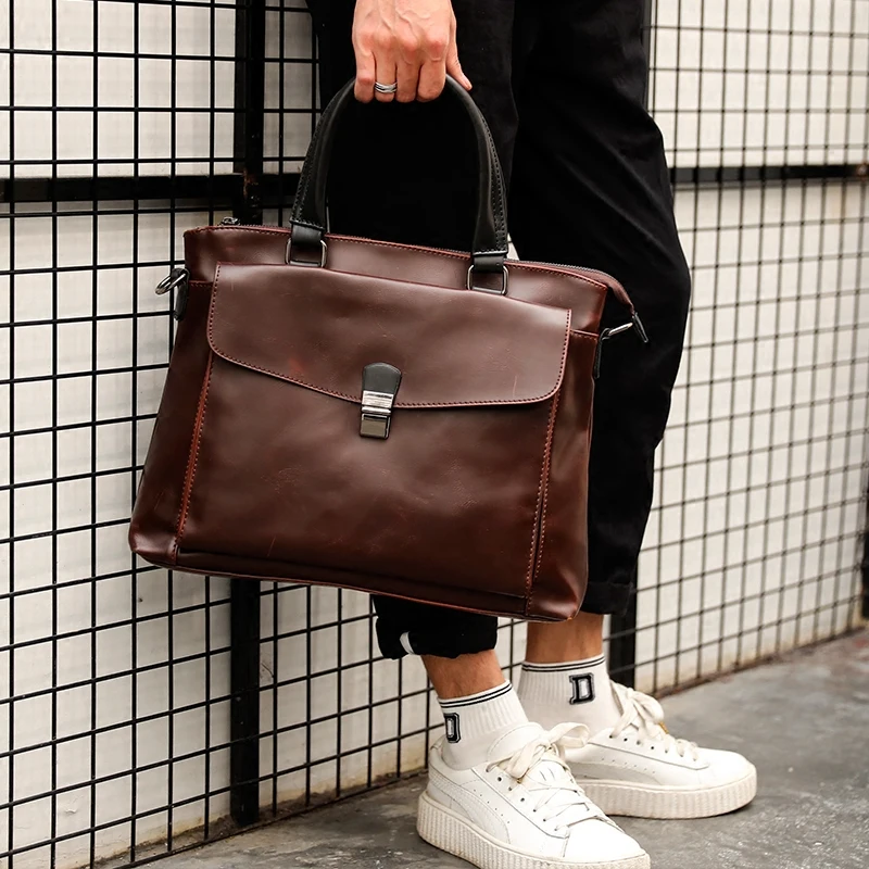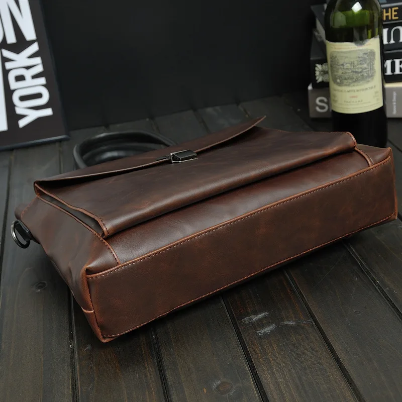 2017 Men 13 Inch Laptop Briefcase Bag Crazy Horse Leather Vintage Business Bag With Sholder Belt
