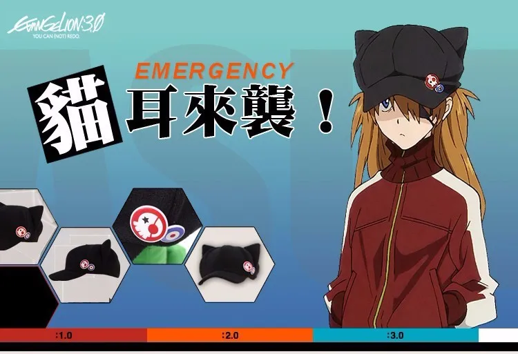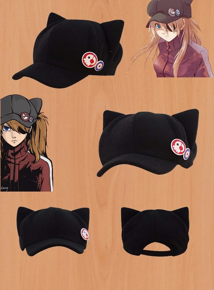 2017 new Anime Neon Genesis Evangelion EVA Asuka Langley Soryu Cat Ear Polar Fleece Cosplay Hat for woman Cap + badges