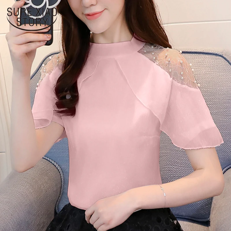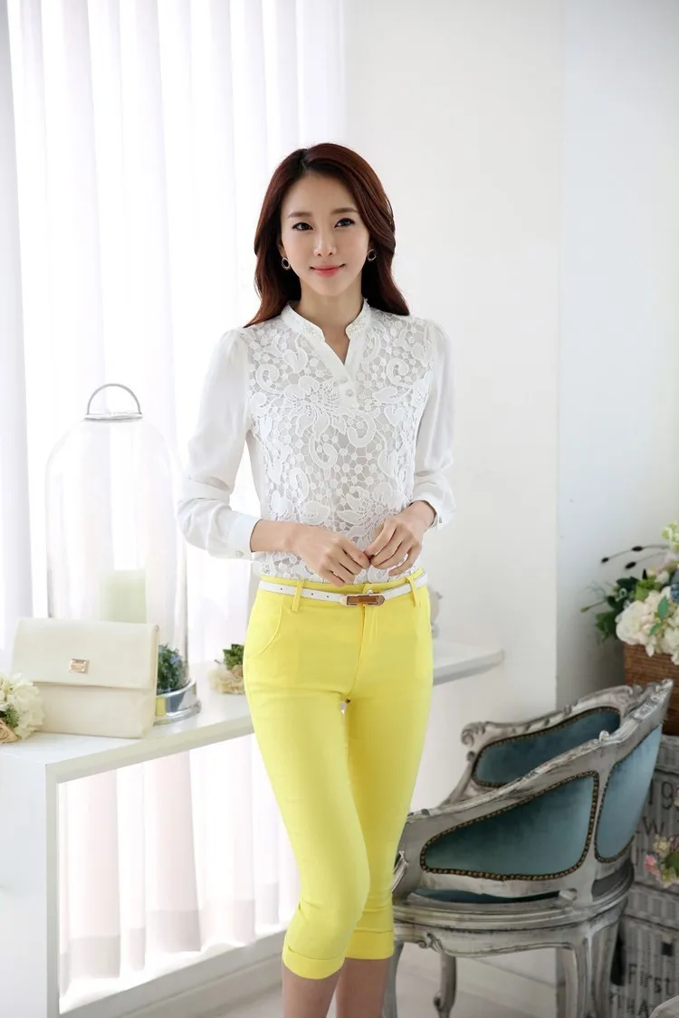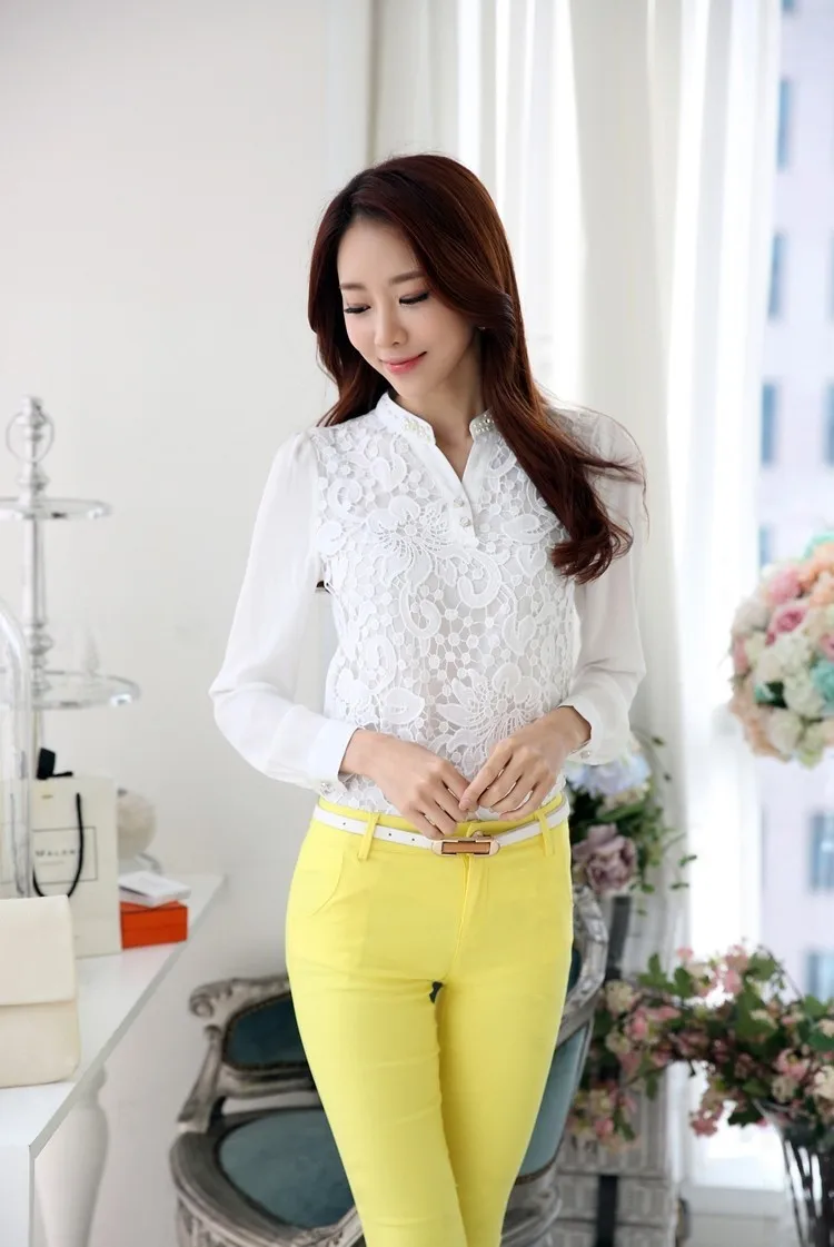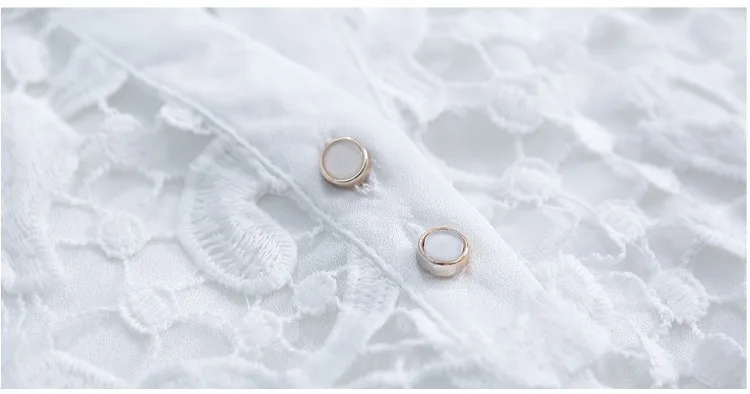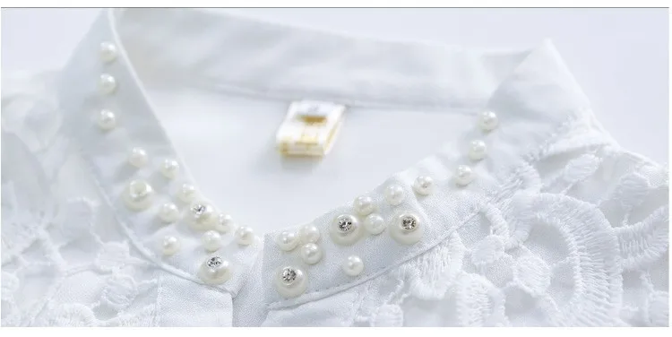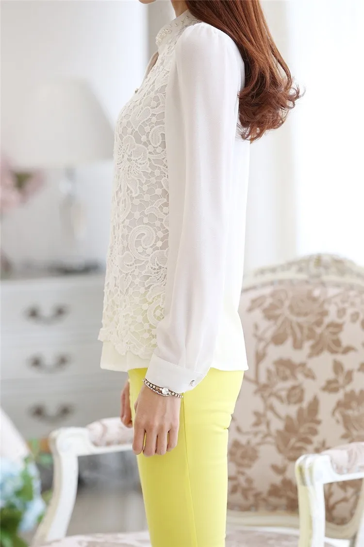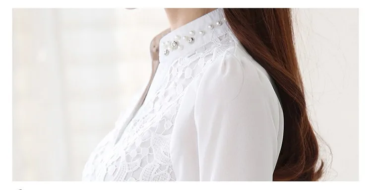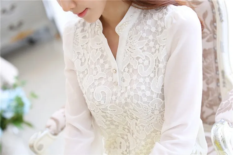 2017 New Arrival Women Lace Blouse Long sleeve Beading Crochet White Chiffon Shirt Plus size loose blusas 60B6
