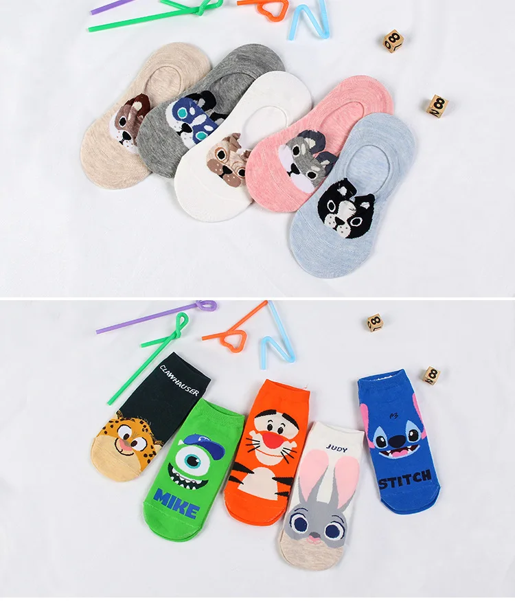 2017 New Design 5pairs=1 lot Cute Cartoon Dogs Rabbit Tiger Kawaii Women Ankle Socks Short Cotton Embroidery Colorful Socks