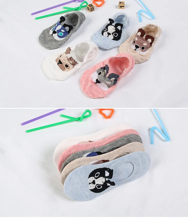 2017 New Design 5pairs=1 lot Cute Cartoon Dogs Rabbit Tiger Kawaii Women Ankle Socks Short Cotton Embroidery Colorful Socks