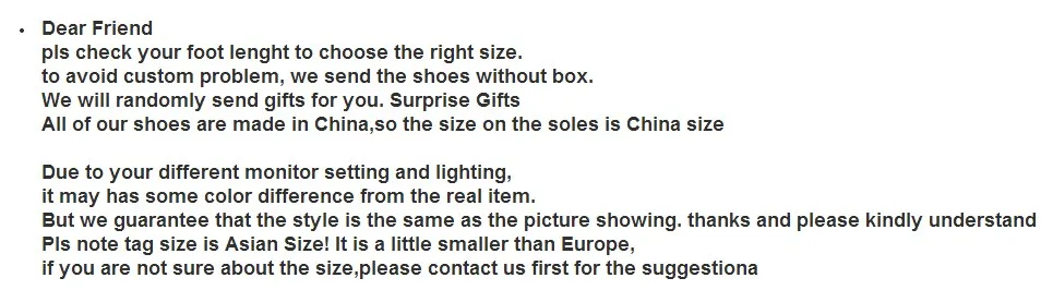 We are not responsible for any custom fees once the items have shipped. By purchasing our products, you consent that one or more packages may be shipped to you and may get custom fees when they arrive in your country.