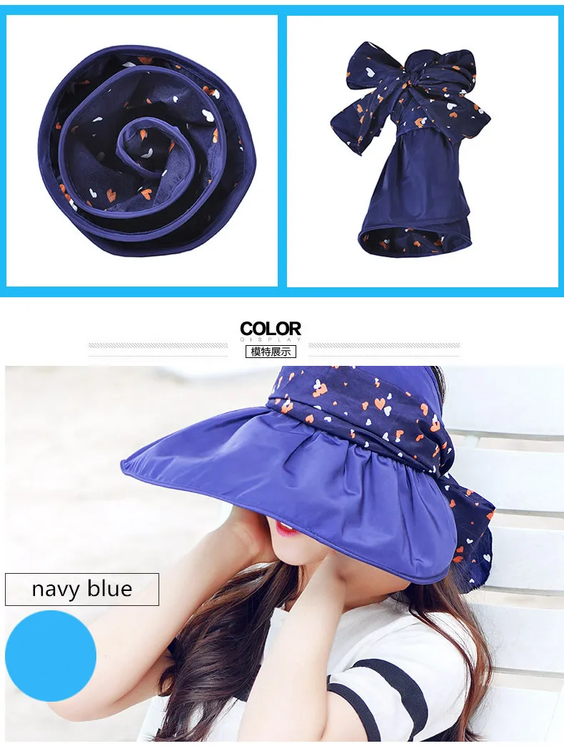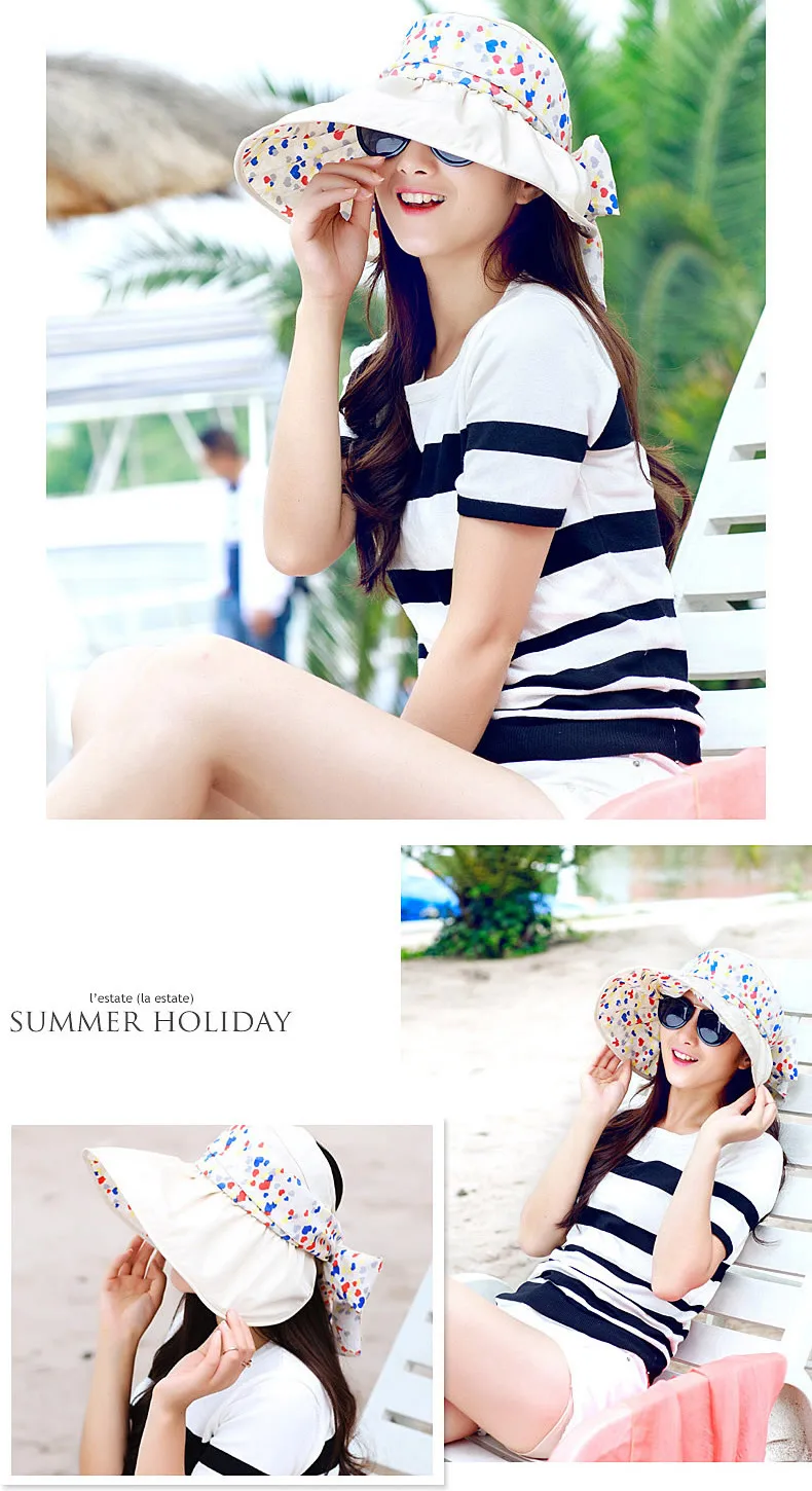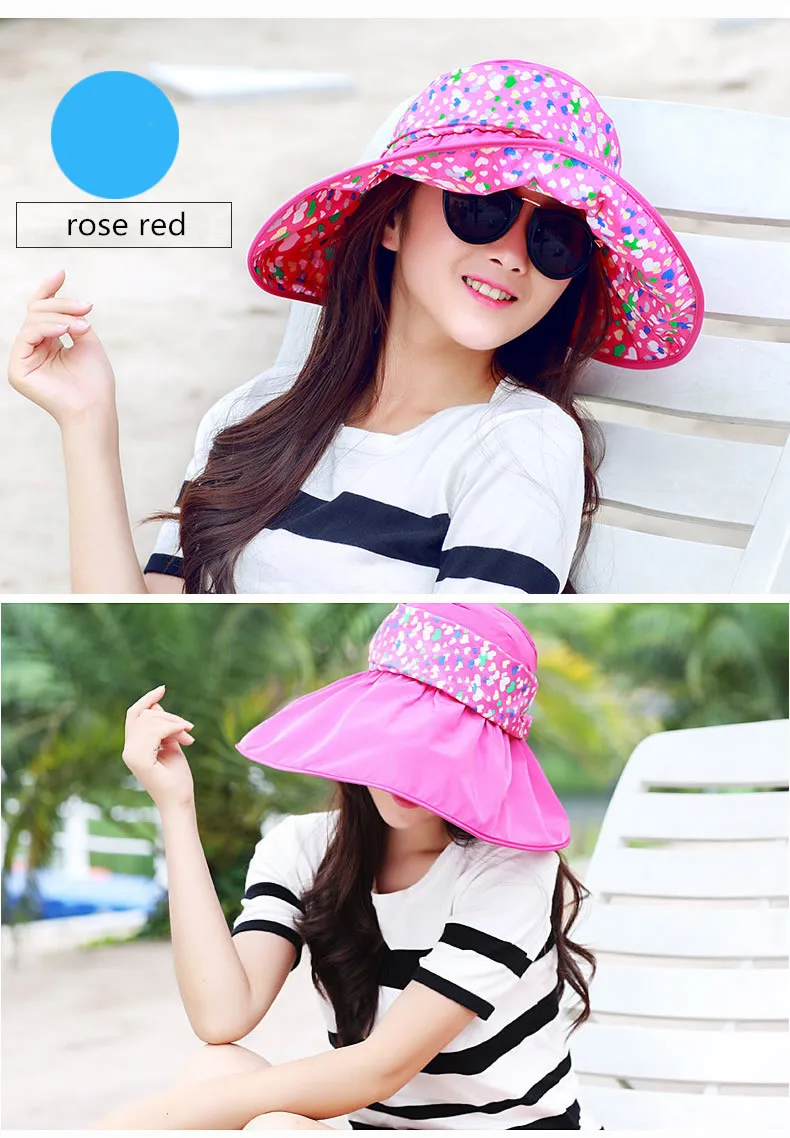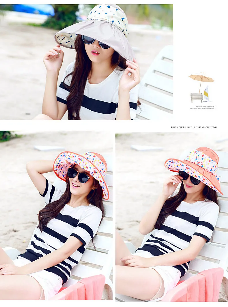 2017 New Foldable Sunshade UV Protection Wide Brim Sun Hat For Women Summer Visor Hat Beach Cap Panama Chapeau Femme Gorra Mujer