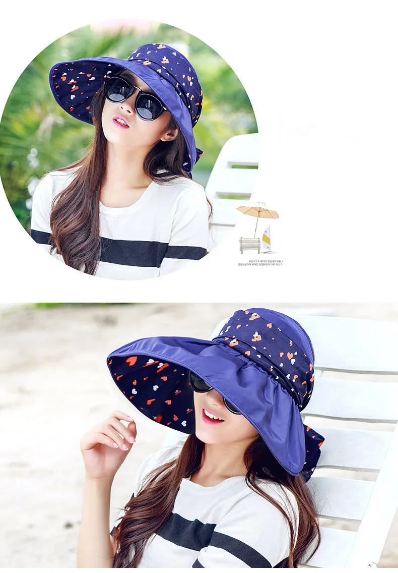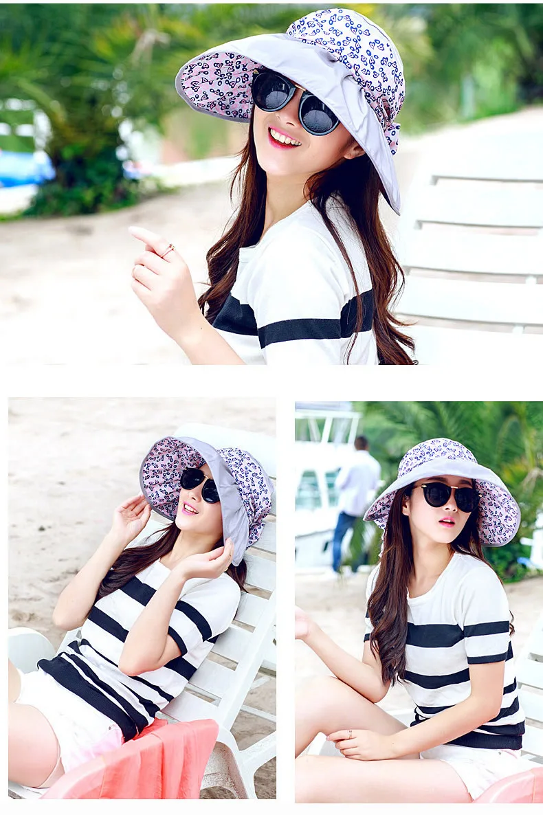 2017 New Foldable Sunshade UV Protection Wide Brim Sun Hat For Women Summer Visor Hat Beach Cap Panama Chapeau Femme Gorra Mujer