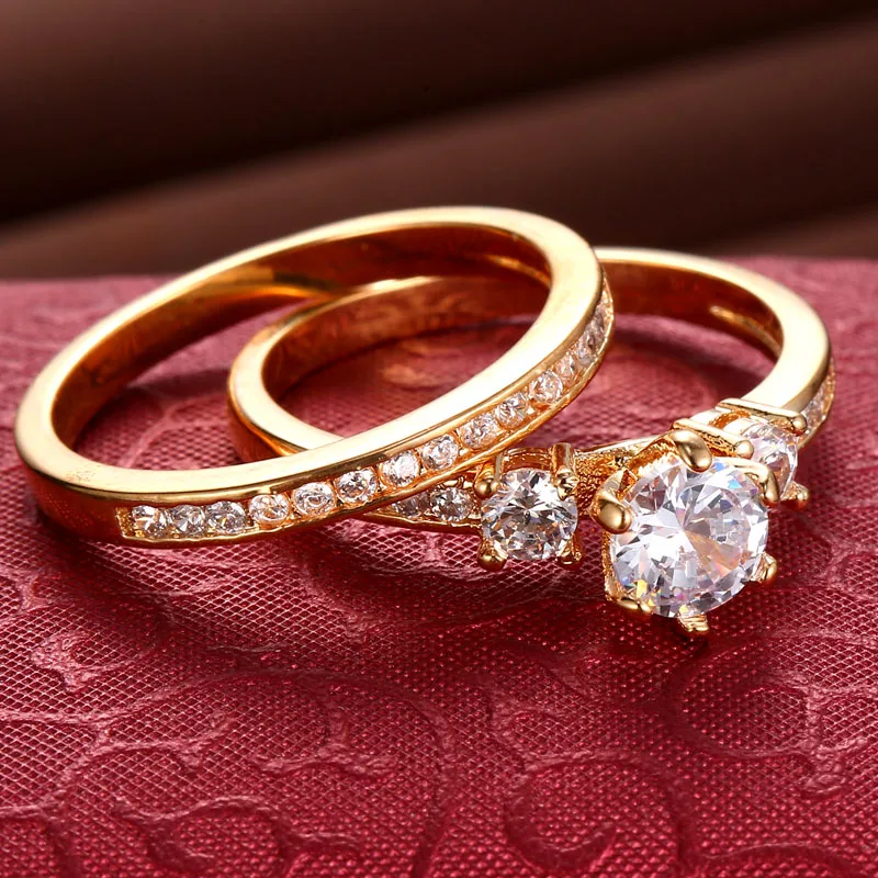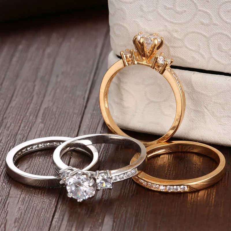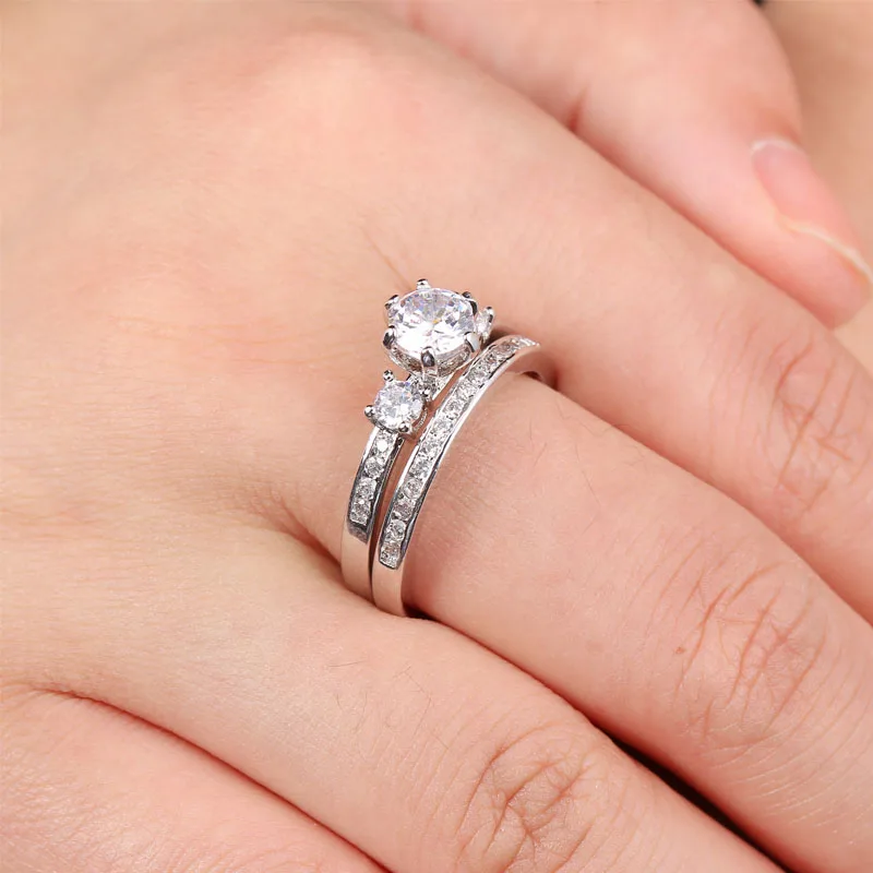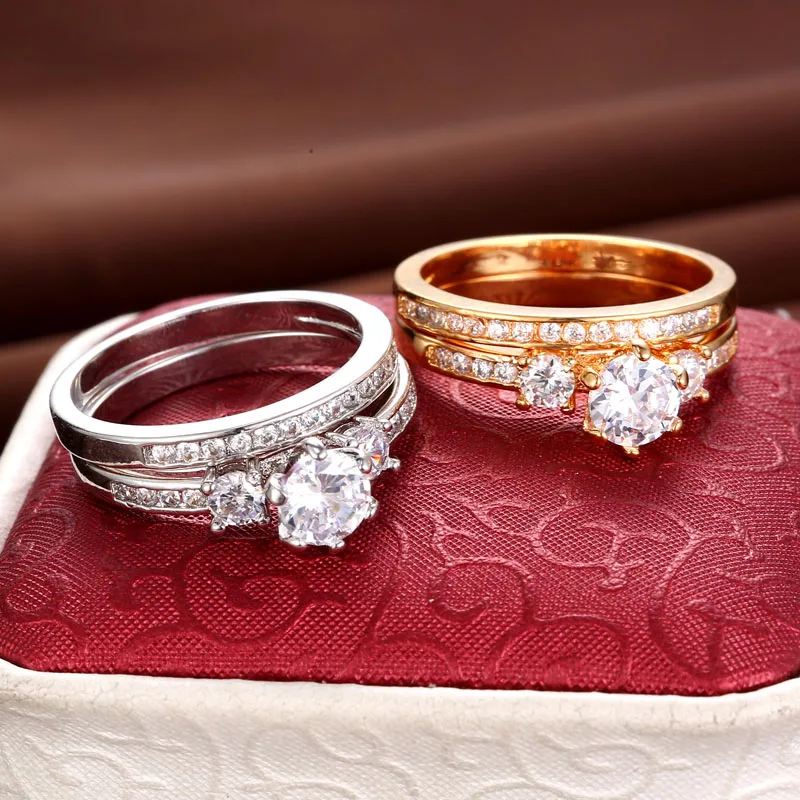 2017 New Popular Wedding double Rings For Women Trendy Party Gift Engagement Romantic suit Rings Fashion Female Jewelry #R81010