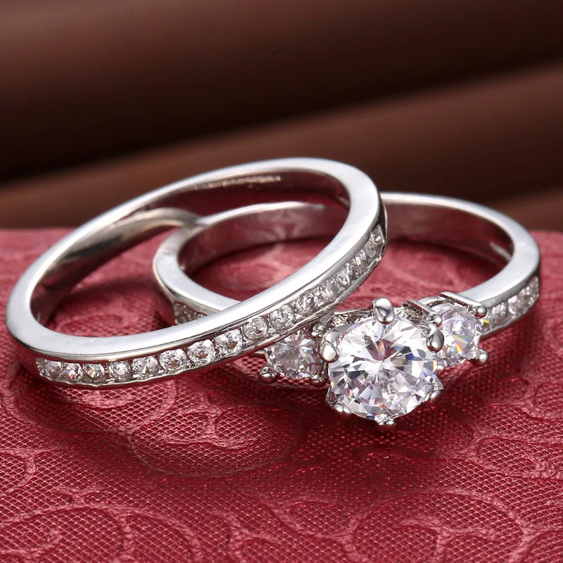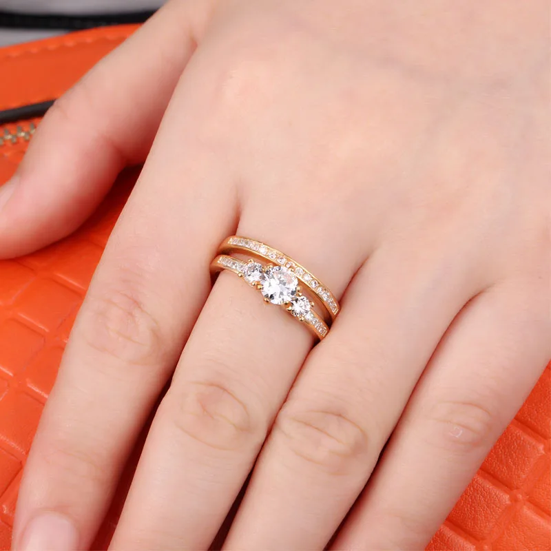 2017 New Popular Wedding double Rings For Women Trendy Party Gift Engagement Romantic suit Rings Fashion Female Jewelry #R81010
