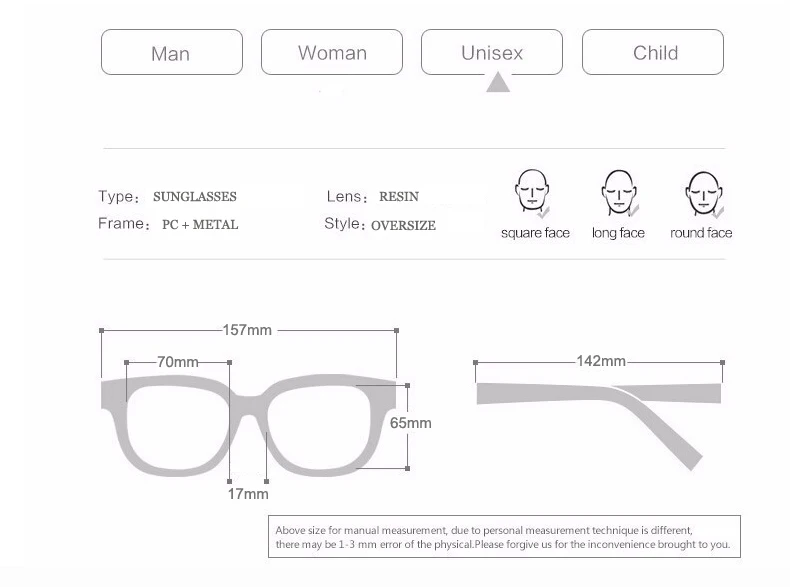 2017 New Sunglasses Oversize women sunglasses Large frame Black Sunglasses Wind Men Sun Glasses Retro square sunglasses