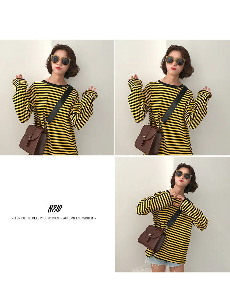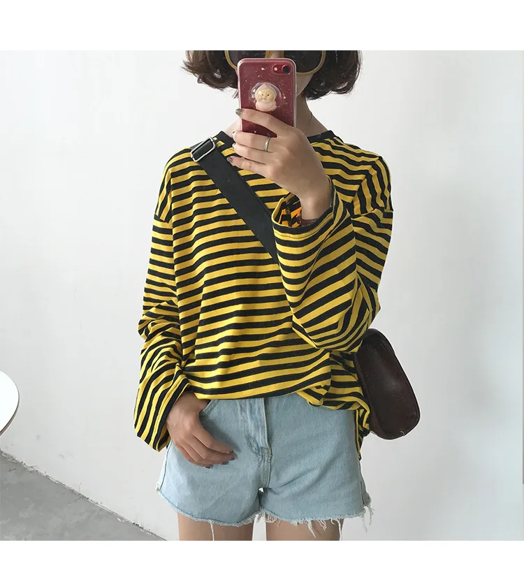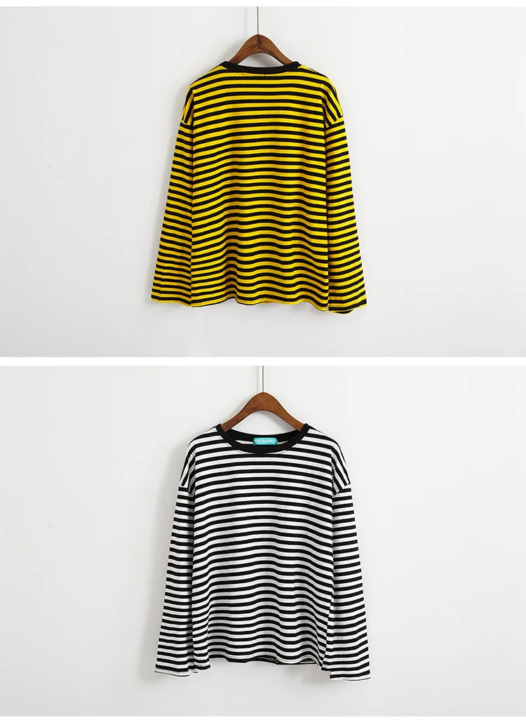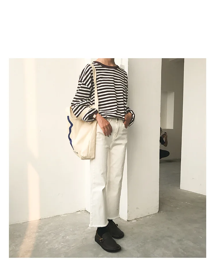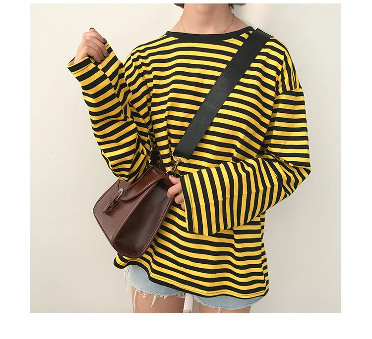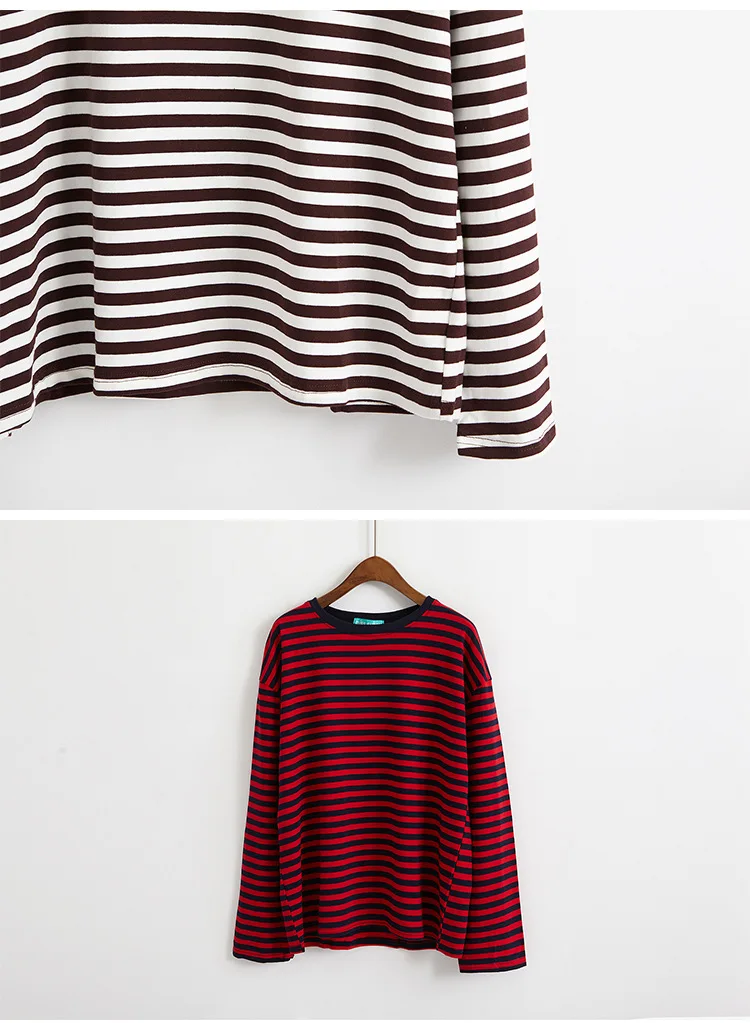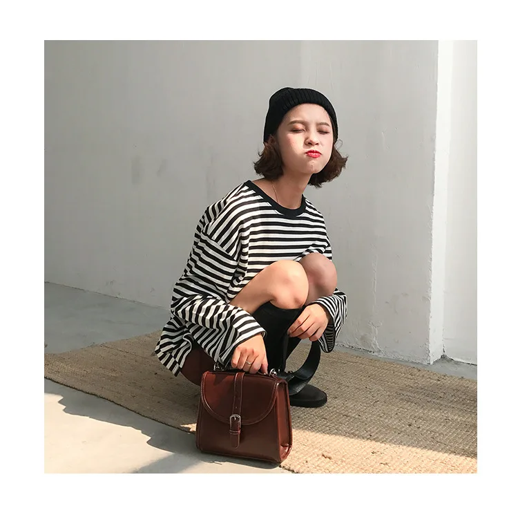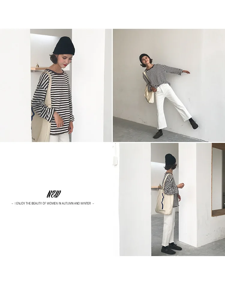2017 New Vintage Fashion Basic Loose Casual Striped All Match Simple Long Sleeve Female T-shirts