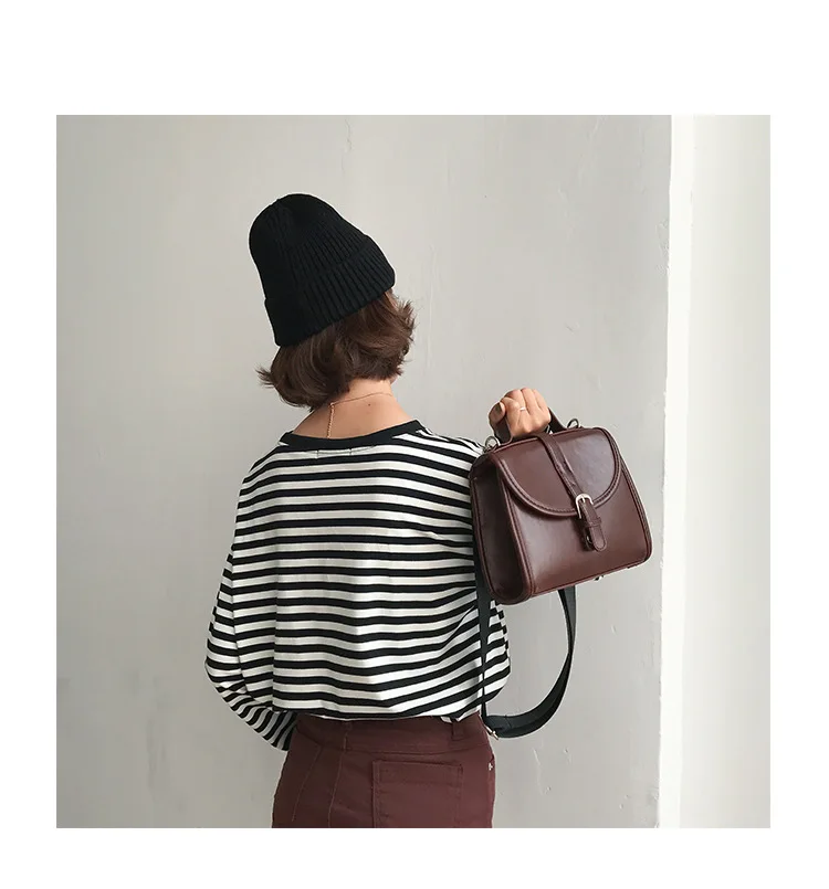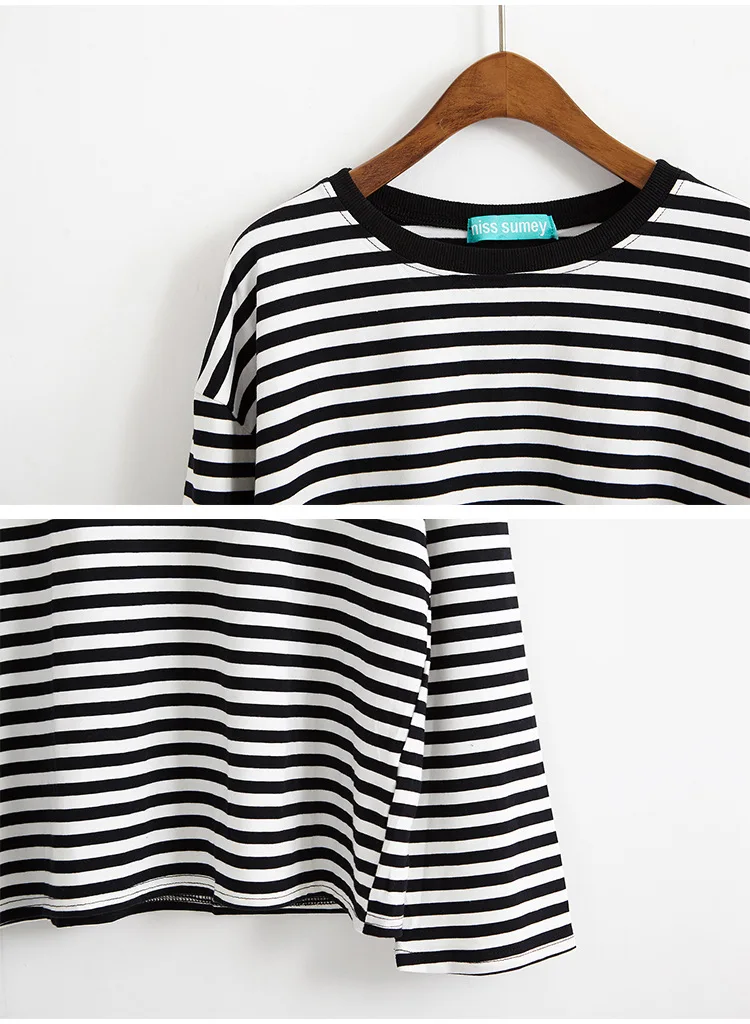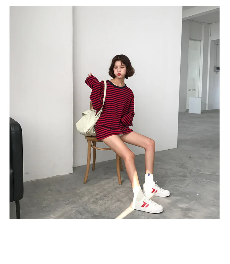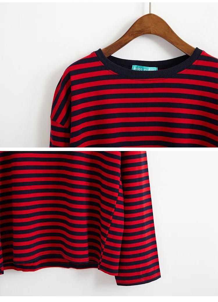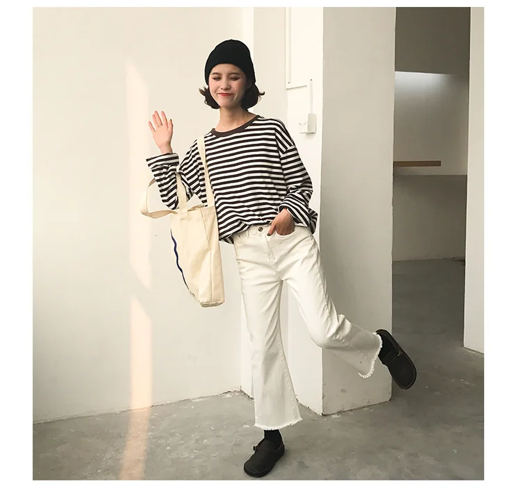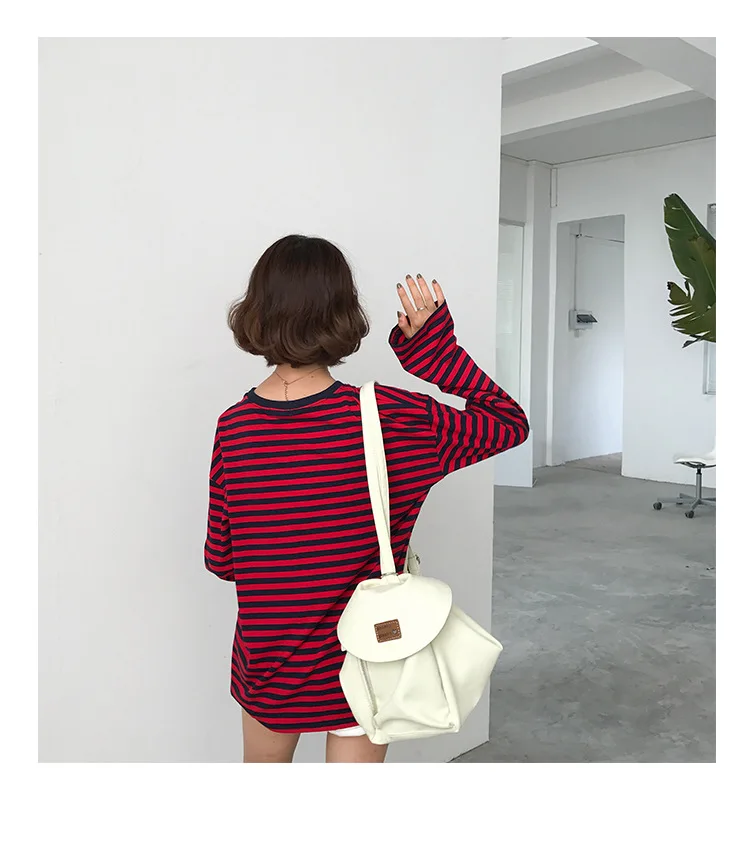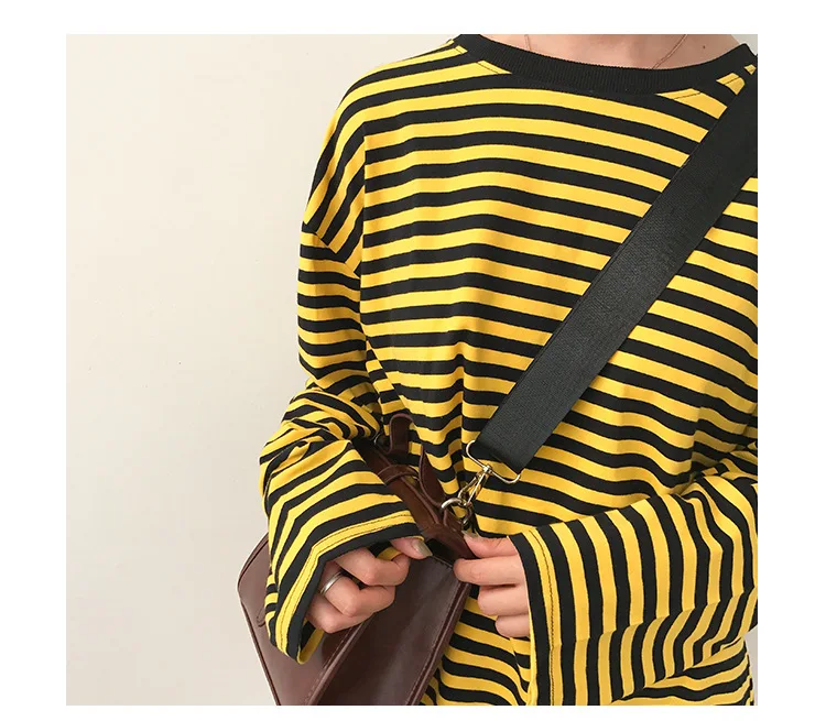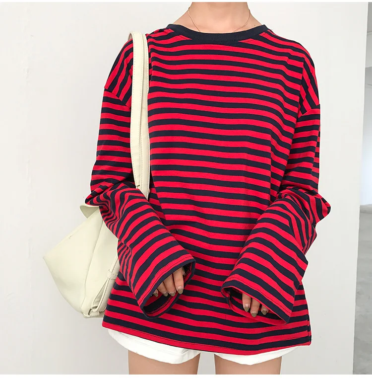 2017 New Vintage Fashion Basic Loose Casual Striped All Match Simple Long Sleeve Female T-shirts