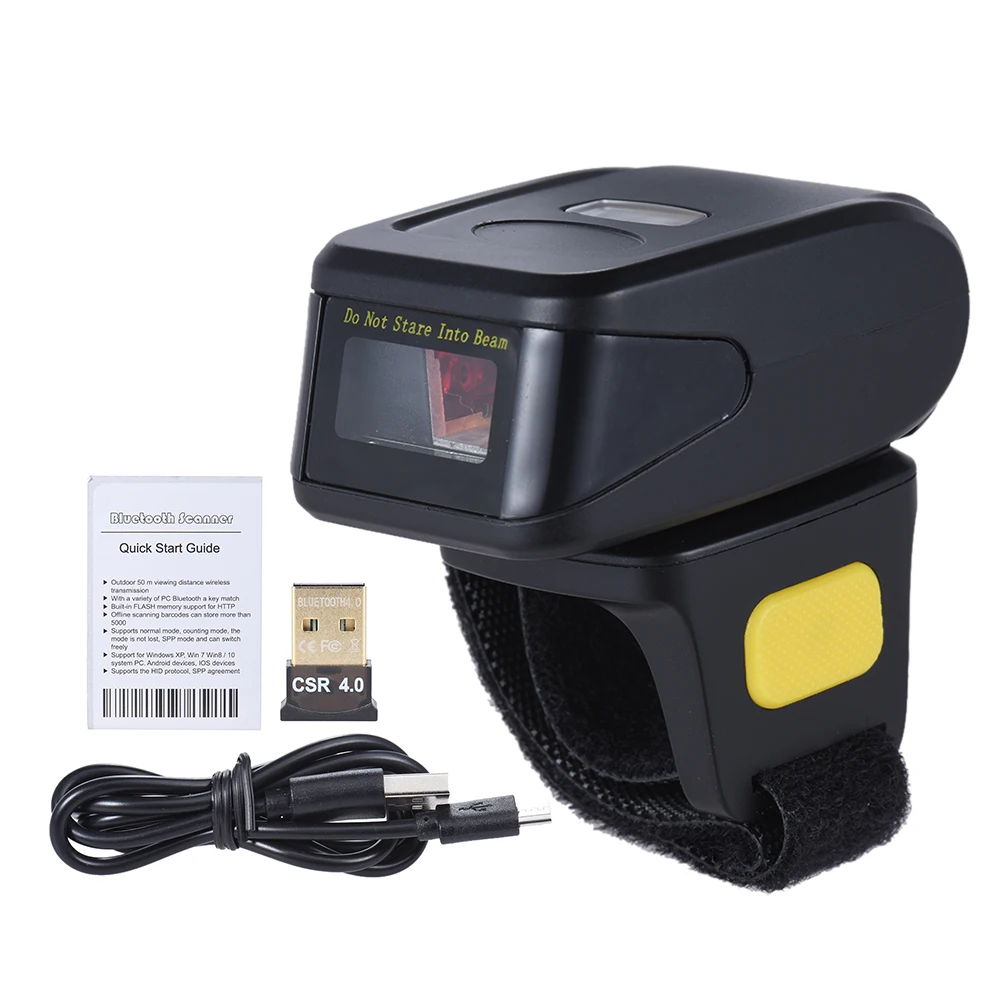 Portable ring barcode scanner, powerful decode capacity for recognizing the common 1D codes quickly and accurately.